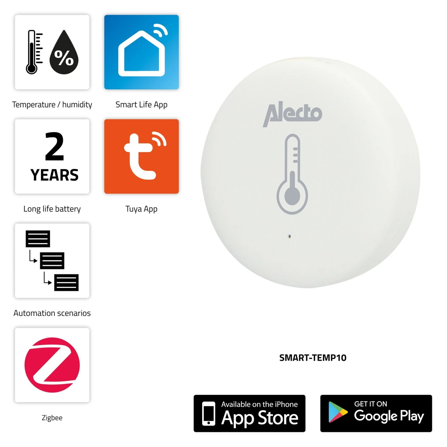 Alecto SMART-TEMP10 Smart Zigbee-temperatuur- en vochtigheidssensor