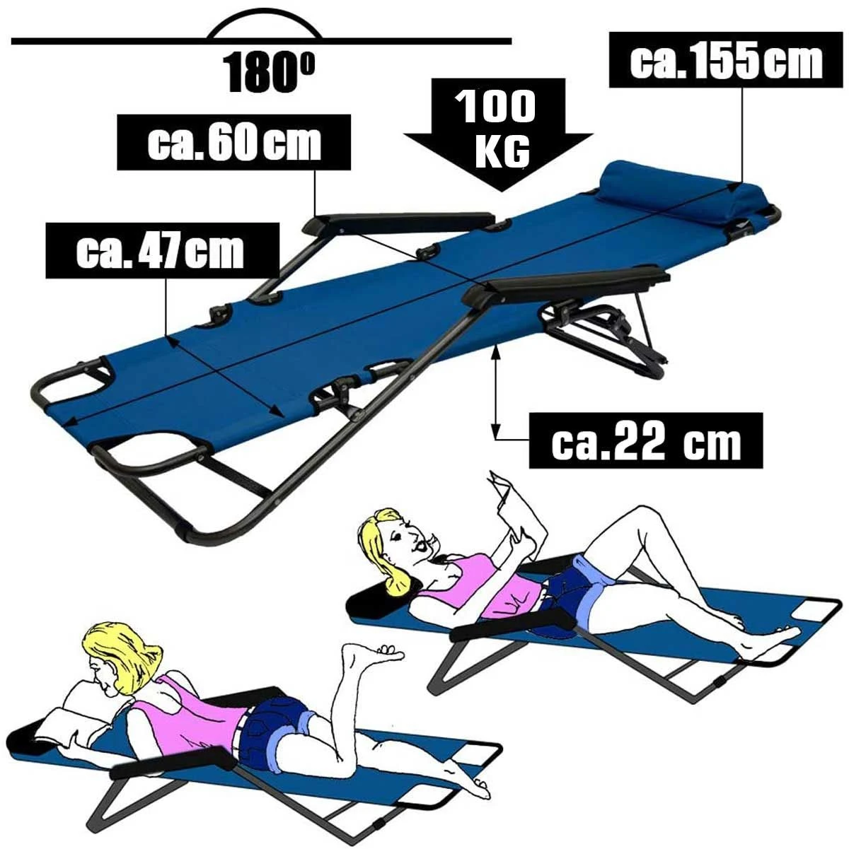 De campingstoel kan snel worden omgebouwd tot een wellnessbank. Als hij is opgeborgen, neemt de Zonnebank erg weinig ruimte in beslag. Dankzij het lichte gewicht kunt u het ligbed snel op de gewenste locatie plaatsen en genieten van een ontspannende pauze. Of het nu in het openluchtzwembad is, op het strand, aan het meer of om te relaxen in het zwembad, de vrijetijdsligstoel is perfect geschikt voor al deze gelegenheden en zorgt voor een unieke sfeer van welzijn.
