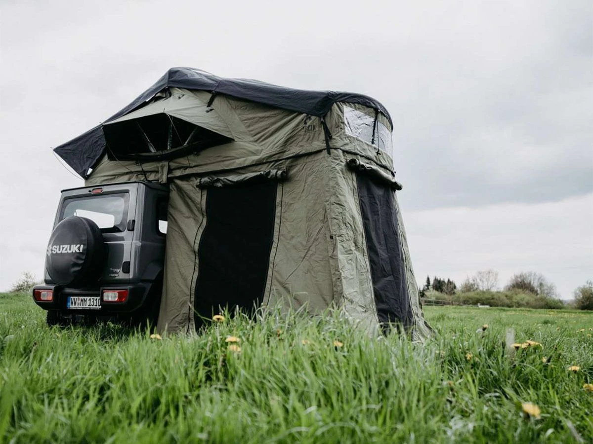De Arcta Viator 160 pro voortent kan gemakkelijk door middel van een ritssluiting aan de Viator 160 pro daktent bevestigd worden. De voortent kan op een hoogte van 190 cm aan de daktent bevestigd worden. Hiermee creëer je binnen een handomdraai een volledig beschut voorportaal en een extra opbergplek voor bagage.