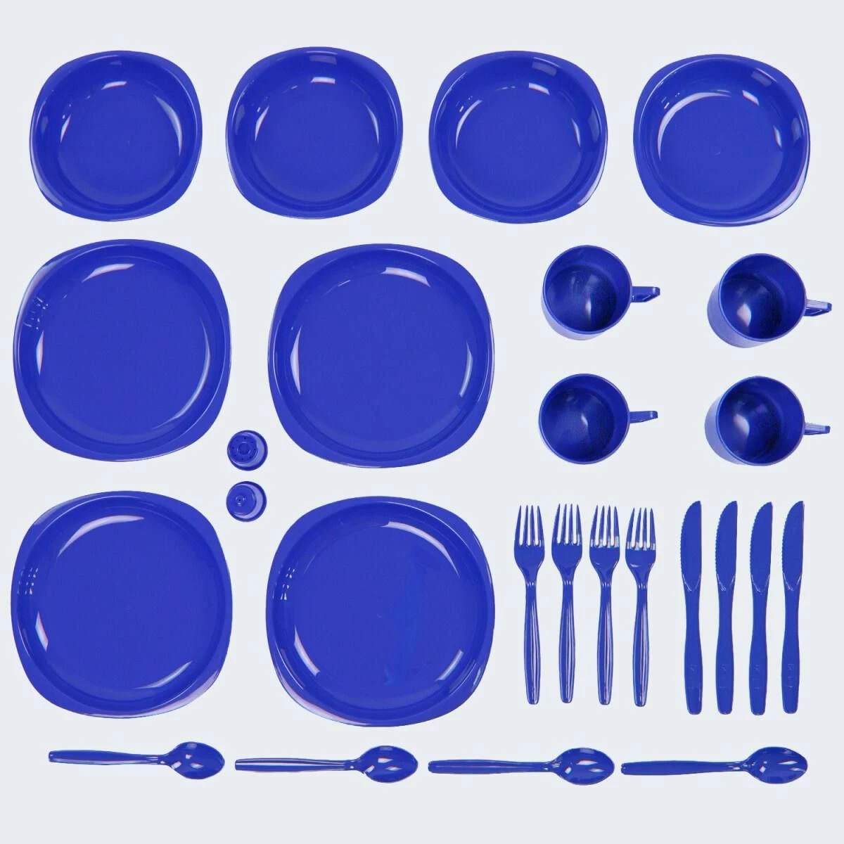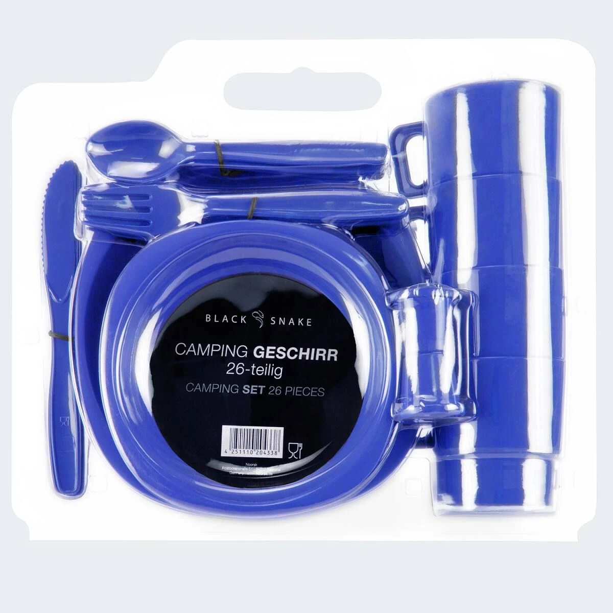 De Black Snake® campingserviesset is compact, onbreekbaar, gemakkelijk schoon te maken, stapelbaar en verkrijgbaar in verschillende aantrekkelijke kleuren. Geschikt voor maximaal 4 Mensen.