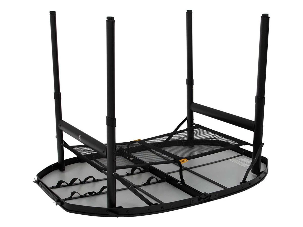Daarnaast is de tafel zeer compact op te bergen als koffermodel, dankzij de afneembare poten en het deelbare blad. Bovendien is de tafel voorzien van een net onder het MDF-tafelblad om spullen in op te bergen, en heeft deze een handgreep waardoor de tafel gemakkelijk mee te nemen is.