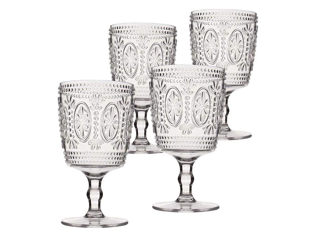 Een set wijnglazen met een speels effect. Kraswerend, lichtgewicht en vaatwasmachinebestendig. Gemaakt van zeer sterk kunststof. De glazen zijn BPA vrij. Erg leuk om te combineren met serviesset Sicilian 6181587.