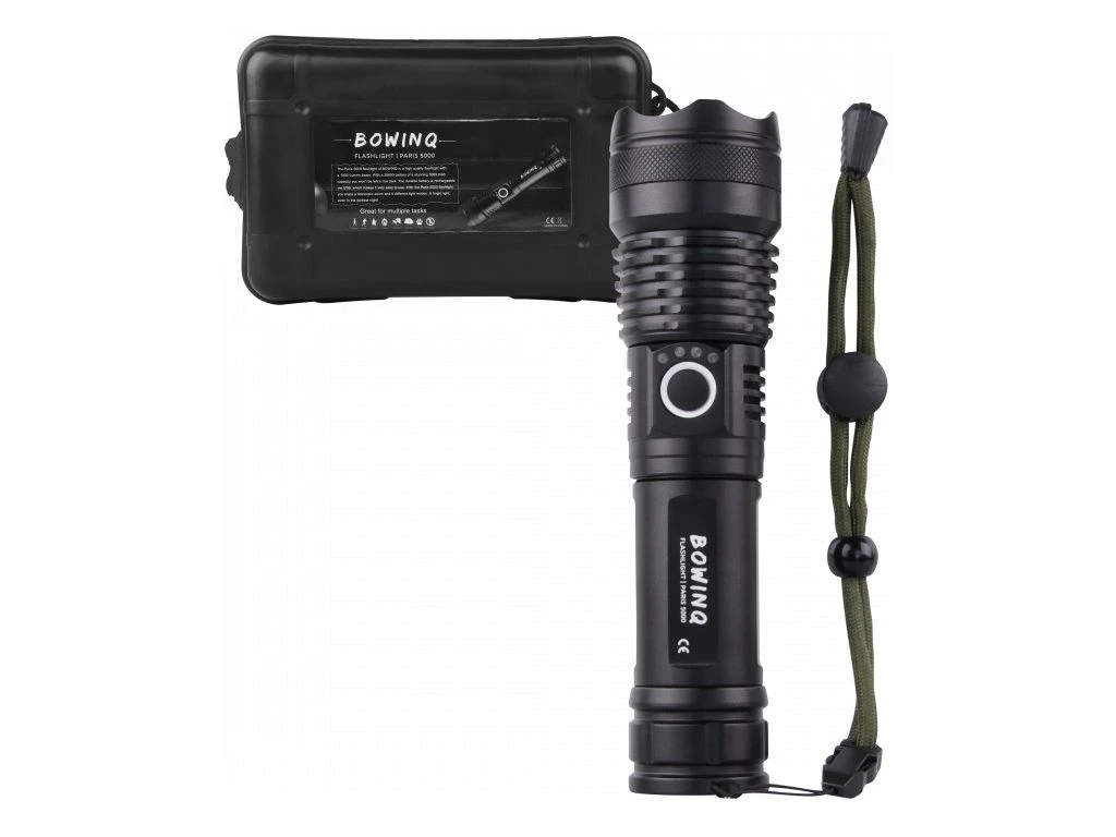 De BOWINQ Paris 5000 zaklamp is een robuuste en oplaadbare zaklamp met heldere ledverlichting, waarmee je tot wel een kilometer ver kunt schijnen in het donker. De zaklamp is geschikt voor diverse situaties en weersomstandigheden. Met een batterijcapaciteit van 5000 mAh biedt de zaklamp een lange gebruiksduur. De bijgeleverde USB-C laadkabel maakt het eenvoudig om de zaklamp op te laden. De zaklamp heeft een indicator met 4 leds die de batterijstatus weergeven. Bij één brandend lampje is het tijd om de zaklamp op te laden. Met een lichtstroom van 2000 lumen is de zaklamp uitgebalanceerd voor een optimale ervaring en gebruiksduur tijdens gebruikelijke activiteiten in het donker. De zaklamp wordt geleverd met een oplaadkabel, holster en opbergdoos. Het heeft een zoomfunctie en 5 lichtmodi, inclusief knipperlicht en SOS-functie. Daarnaast is de zaklamp water- en stofbestendig.