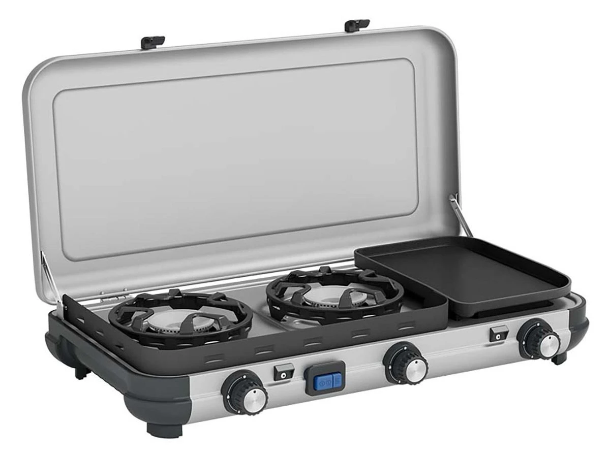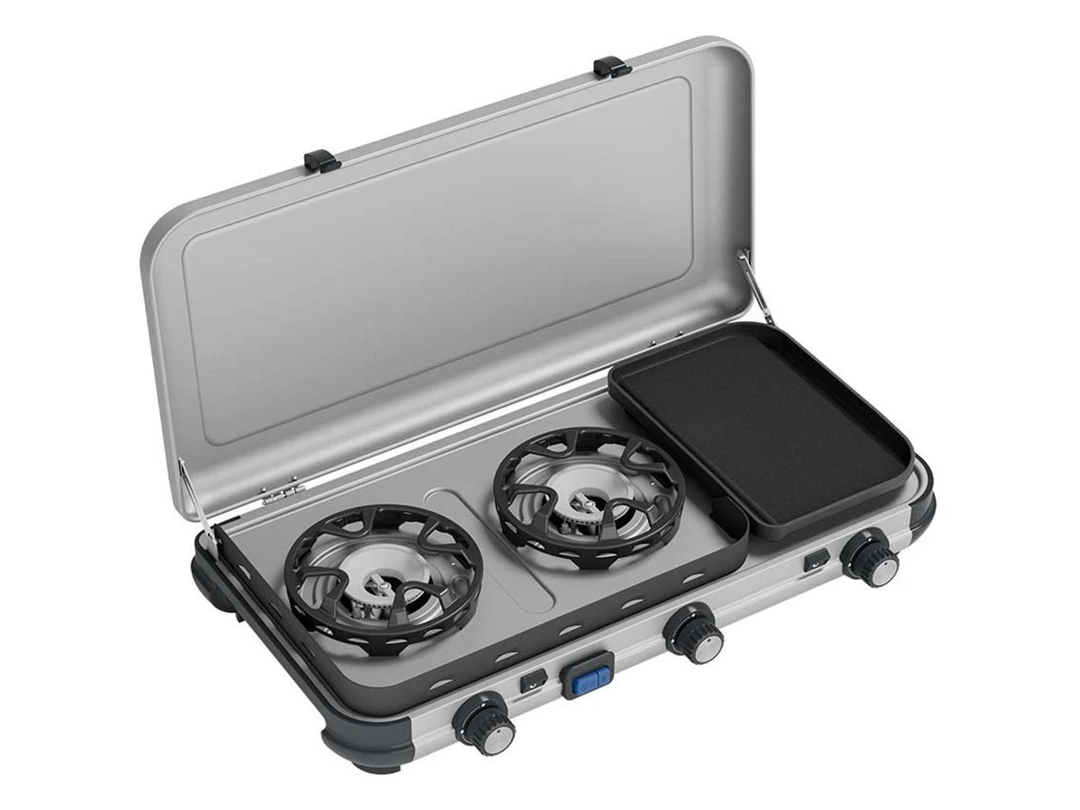 Wil je de lekkerste gerechten kunnen bereiden op de camping? Kies dan voor dit kooktoestel van Campingaz. Dit kooktoestel is uitgerust met twee stabiele pannendragers en een gegoten aluminium grillplaat. De branders kunnen onafhankelijk van elkaar en gelijktijdig gebruikt worden. Zo kun je bijvoorbeeld water koken terwijl je vlees bakt.