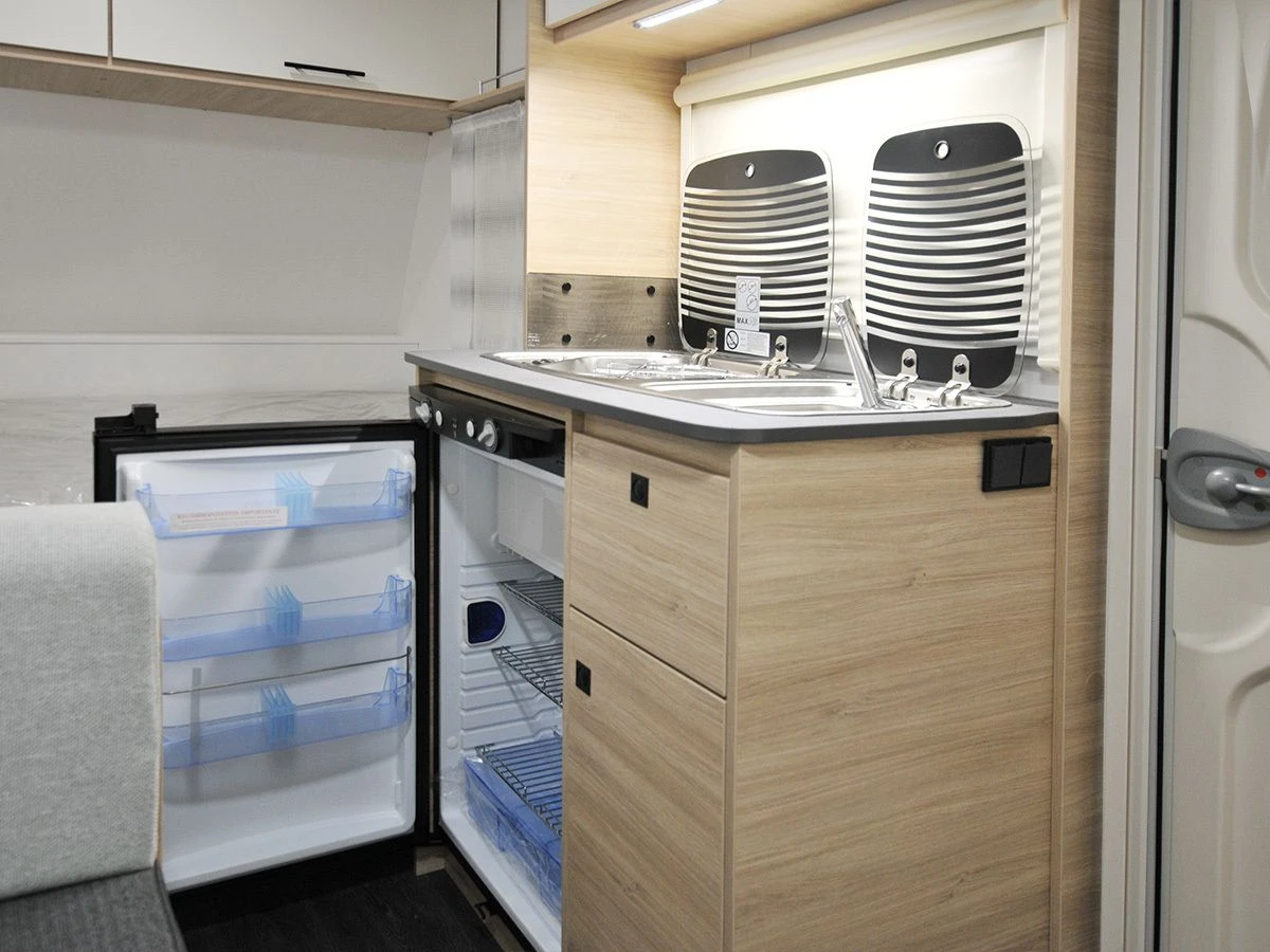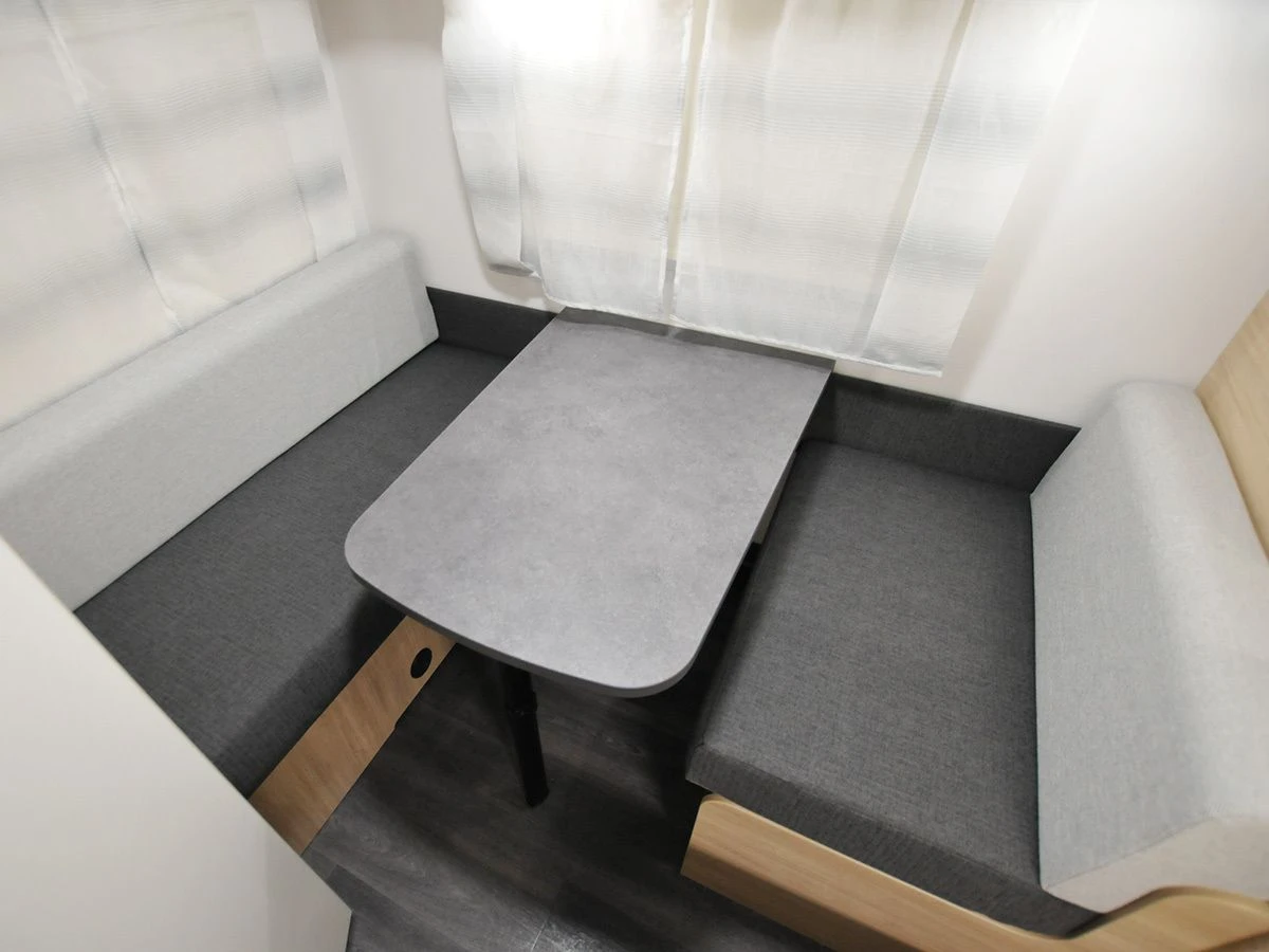 | Caravan indeling | Achter toilet, Middenkeuken, Slaapbank, Treinzit, Vast bed |