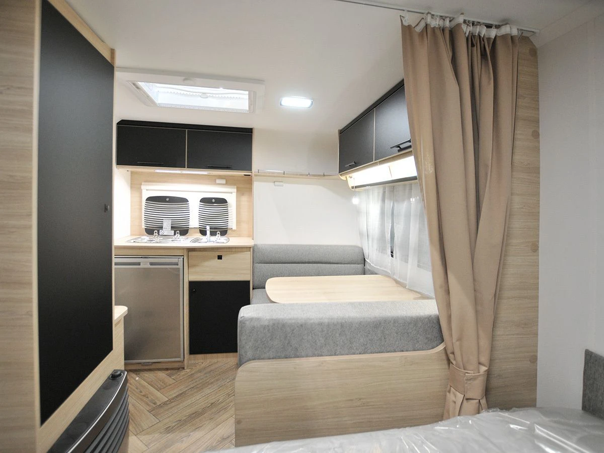 De Sport Line 410 heeft slaapplaatsen voor 3 personen. Het frans bed voorin de caravan heeft een afmeting van 138 x 198 cm. Achterin de caravan vindt u een comfortabele treinzit. Deze treinzit kan in een handomdraai worden omgebouwd tot een ruim bed van 108/103 x 185 cm.