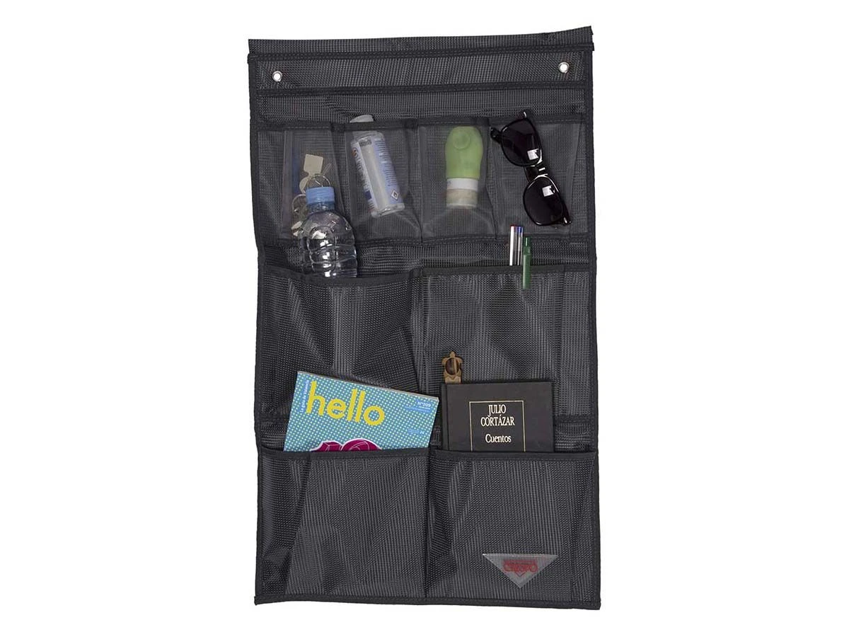Multifunctionele organizer met 8 vakken. Ideaal voor in tent, caravan of camper. Voorzien van 8 opbergvakken. Te bevestigen met een pees of aan de ophangogen.