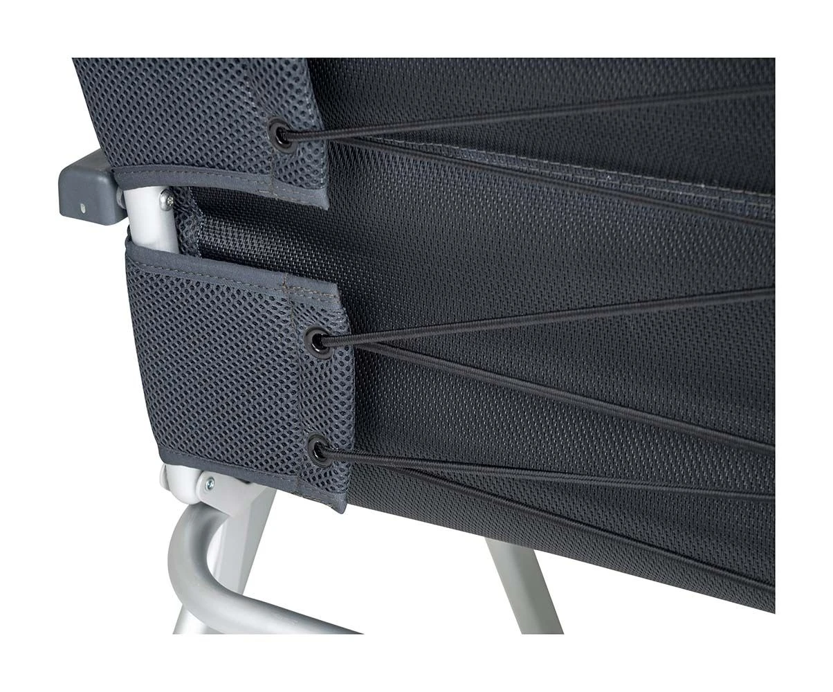 Een zeer luxe en één van de meest comfortabele relaxstoelen. Deze traploos verstelbare relaxstoel is voorzien van een extra dikke en stevige 3D gepolsterde schuimvulling. Deze gepolsterde stof loopt volledig om het frame heen, waar de luxe stof aan de achterkant wordt bevestigd en een zeer aangename zit is gecreëerd. Daarnaast lopen de elastieken volledig over de rug voor een verhoogde mate van comfort. Daarnaast zorgt de afwerking voor een stijlvolle uitstraling. De schuimvulling heeft een open celstructuur waardoor er geen vocht wordt vastgehouden. Hierdoor droogt deze stoel sneller dan stoelen met een traditionele schuimvulling. Zowel de rugleuning als de armleggers van deze relaxstoel zijn ergonomisch gevormd en de is stoel voorzien van een remsysteem om de stoel in iedere gewenste positie te fixeren. De stoel is voorzien van een geanodiseerd H-frame voor extra stabiliteit en stevigheid. Ingeklapt is deze stoel zeer compact en daardoor gemakkelijk mee te nemen in de meegeleverde opbergtas.