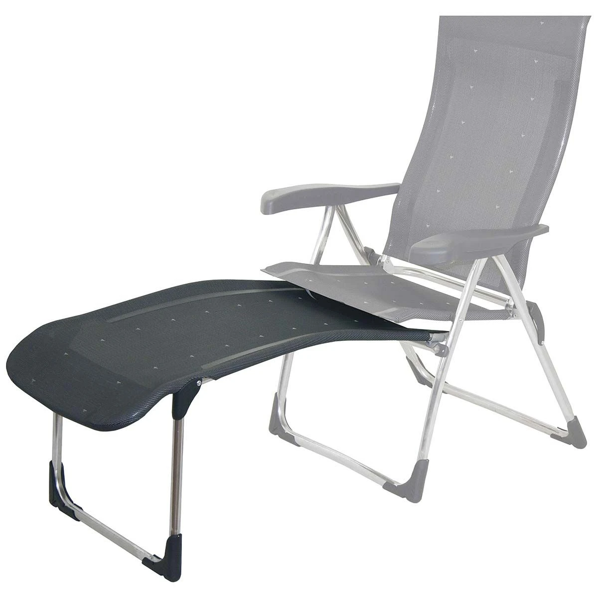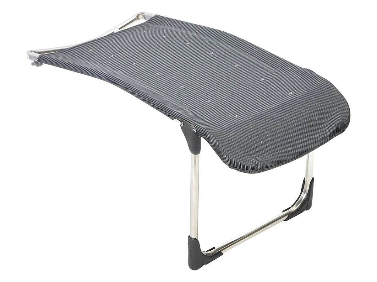De doorlopende stof zorgt voor optimaal ligcomfort, terwijl het inklapbare ontwerp het gemakkelijk maakt om de voetenbank na gebruik onder de stoel weg te schuiven.