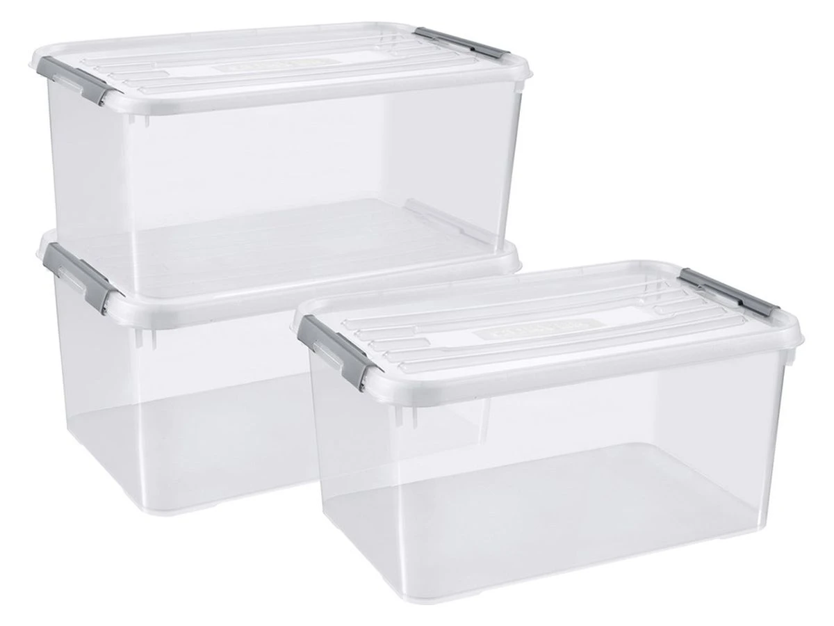 Curver Handy+ opbergbox – 50L – 3 stuks – Transparant met deksel