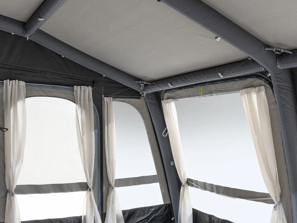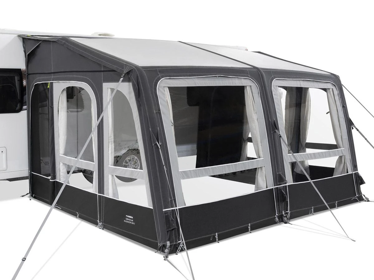 De Grande Air-serie van Dometic kenmerkt zich door de diepte van 300 cm. Hierdoor heb je in de Grande Air een mooi groot, rechthoekig oppervlak. Plek genoeg dus voor je tafel, stoelen en overige kampeeruitrusting. Het frame van de voortent is volledig opblaasbaar, en daardoor is het opzetten een fluitje van een cent. Schuif de voortent door de rail van je camper of caravan, sluit de meegeleverde handpomp aan en oppompen maar!