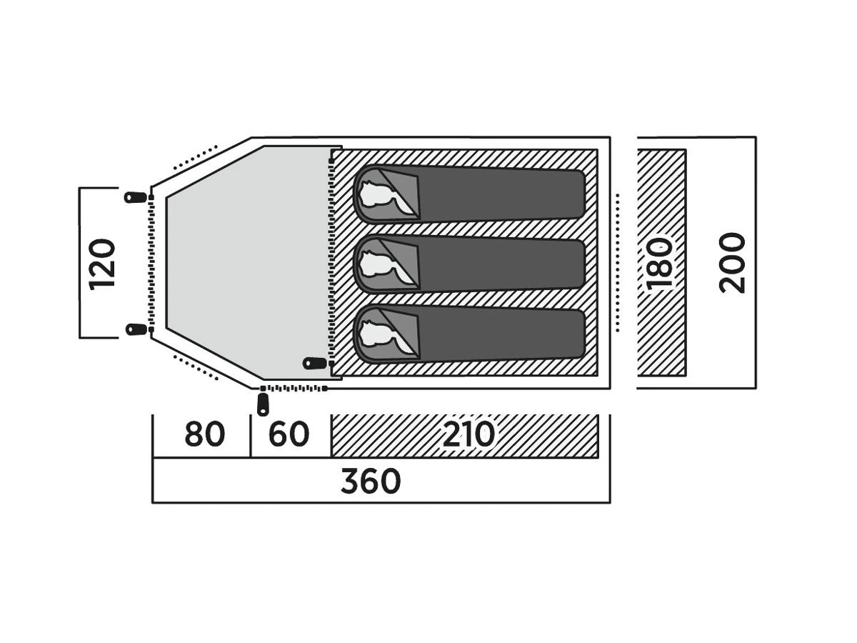 – Materiaal buitentent: WeatherGuard 2000, 180T polyester PU coated, PFC free water repellency, fire retardant