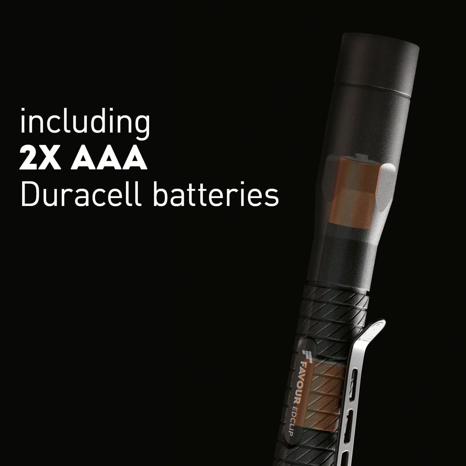 De zaklamp wordt geleverd met twee AAA Duracell batterijen.