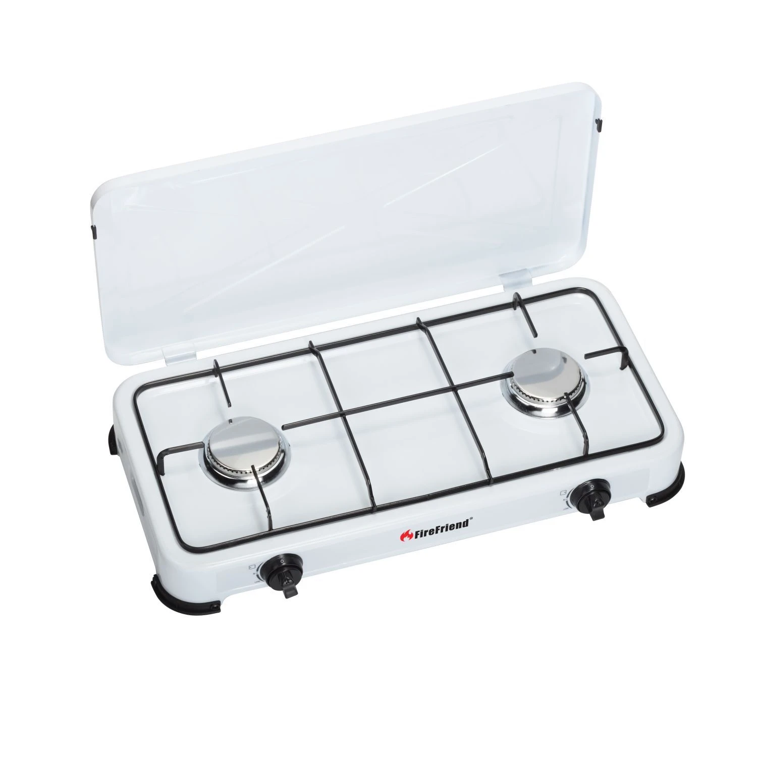 Het FireFriend gaskooktoestel heeft een handig branderdeksel dat je ook als windscherm kan gebruiken. Door het deksel te sluiten berg je de gaskomfoor eenvoudig en compact op in je caravan of tent. De gefixeerde RVS branders laten niet los tijdens het vervoeren en hebben een vermogen van 1500 Watt per stuk.Lichtgewicht en compact