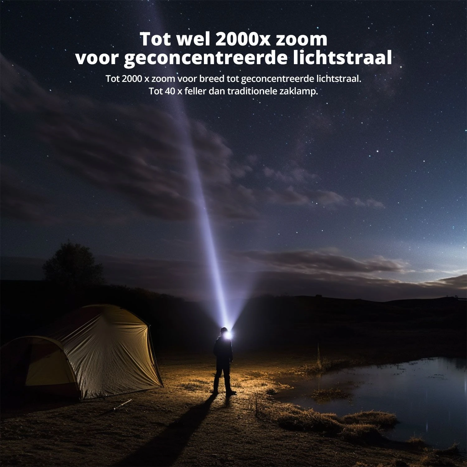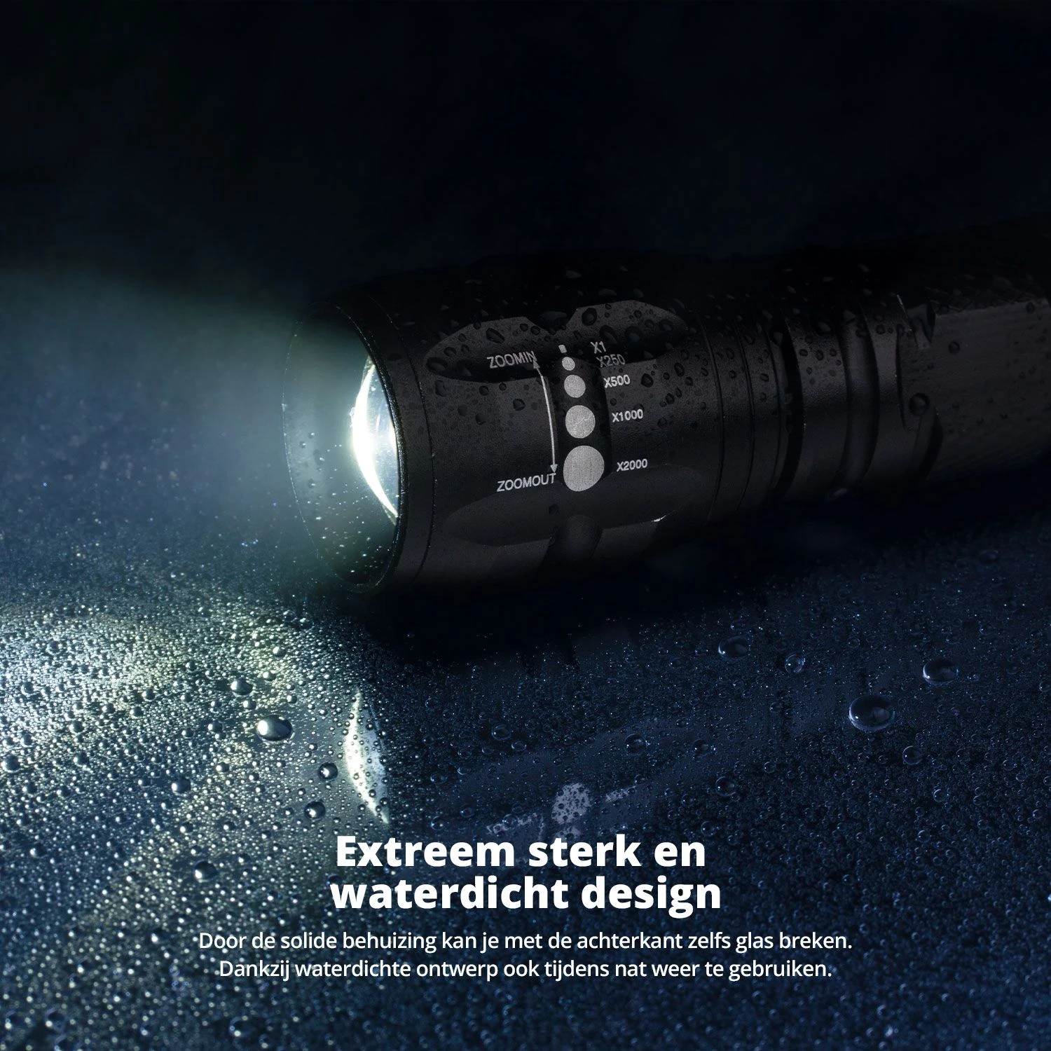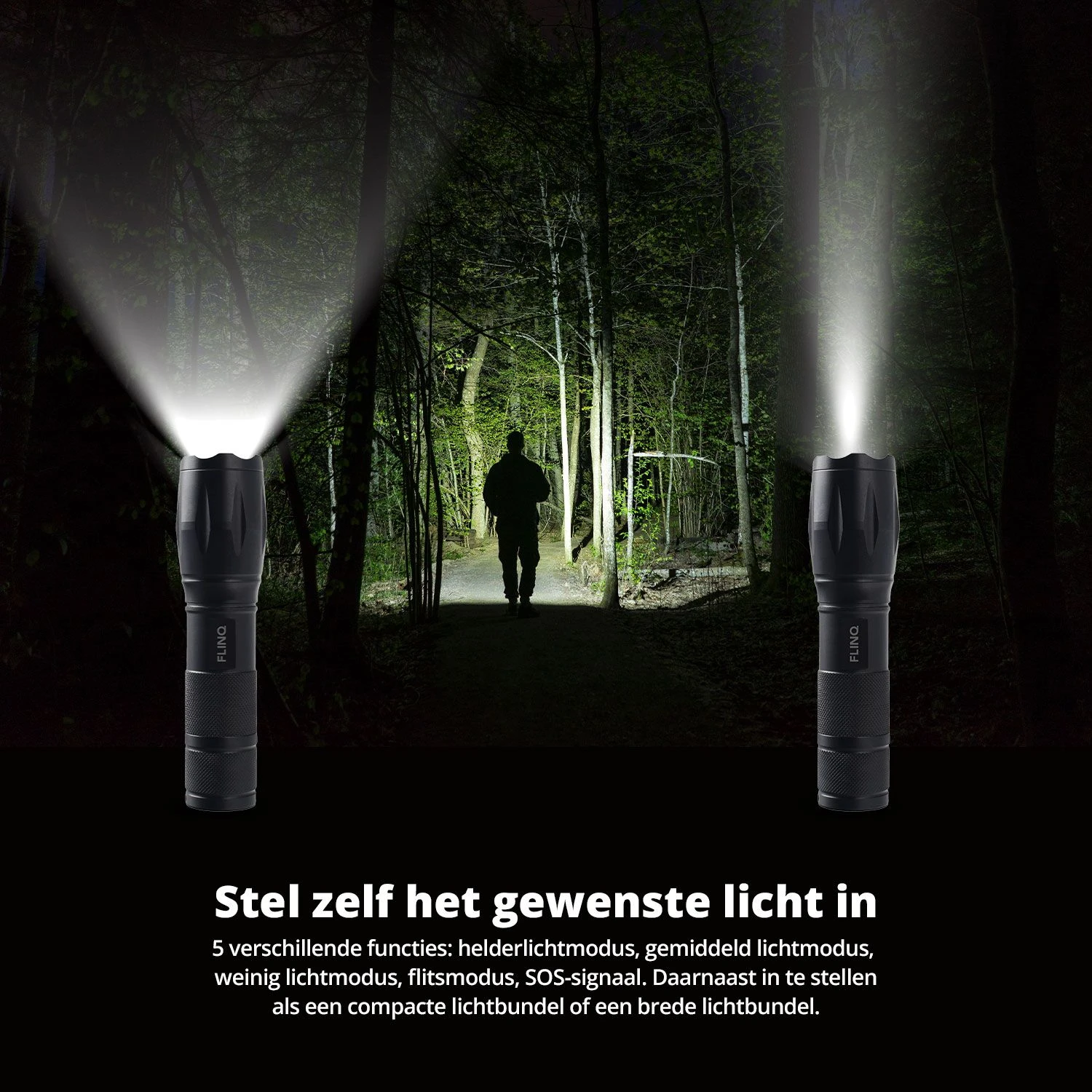 FlinQ Militaire Zaklamp: Compact en kracht, voor elke situatie. Inclusief 6 batterijen. Met de FlinQ Militaire Zaklamp ben je altijd voorbereid, waar je ook bent. Of je nu een noodpakket samenstelt, een outdooravontuur plant of simpelweg een betrouwbare zaklamp wilt, deze krachtige zaklamp biedt ongeëvenaarde prestaties en veelzijdigheid. De robuuste behuizing, verstelbare lichtstanden en indrukwekkende lichtbundel maken dit een essentieel hulpmiddel voor in en om het huis, of in extreme omstandigheden. De belangrijkste punten op een rij: Onmisbaar in noodsituaties: Een absolute must-have in elk noodpakket of survival kit. Indrukwekkende helderheid: Tot 40x feller dan traditionele zaklampen, met een bereik tot 1000 meter. Duurzaam en weerbestendig: Schok- en waterbestendige behuizing van hoogwaardig aluminium. Flexibele lichtstanden: Kies uit vijf modi, inclusief SOS-signaal en flitsmodus. Lange levensduur: Werkt tot wel 25.000 uur en is geschikt voor temperaturen van -10 tot +40 °C. Krachtige en verstelbare lichtbundel Met zijn geavanceerde LED-technologie en instelbare zoomfunctie biedt de FlinQ zaklamp een flexibele lichtbundel. Verlicht je omgeving met een brede straal of focus het licht met een compacte bundel. De zaklamp kan tot wel 1000 meter reiken en biedt vijf verschillende lichtstanden, waaronder een helderlichtmodus en een SOS-signaal. Perfect voor kamperen, wandelen of noodgevallen. Duurzaam, schokbestendig en waterdicht De FlinQ Militaire Zaklamp is gebouwd om te presteren onder extreme omstandigheden. De aluminium behuizing is lichtgewicht, maar robuust genoeg om bestand te zijn tegen schokken en stoten. Met een IP44-classificatie is de zaklamp spatwaterdicht, waardoor hij zowel binnen als buiten betrouwbaar is, ongeacht het weer. Langdurige verlichting met oplaadgemak Deze zaklamp biedt een indrukwekkende batterijlevensduur, zodat je er altijd op kunt rekenen wanneer je hem nodig hebt. Met drie AAA-batterijen kun je de zaklamp eenvoudig van stroom voorzien. Dankzij een levensduur van 25.000 uur ben je verzekerd van betrouwbare verlichting, of je nu thuis bent of op pad. Altijd voorbereid met een zaklamp in je noodpakket Een krachtige zaklamp is een essentieel onderdeel van elk noodpakket. Bij stroomuitval, natuurrampen of andere noodsituaties zorgt de FlinQ Militaire Zaklamp voor direct helder licht. Dankzij de compacte en duurzame constructie kun je hem eenvoudig meenemen in je survival kit, auto of rugzak. Veiligheid staat voorop, en deze zaklamp helpt je om de controle te behouden. Specificaties: Bereik: Tot 1000 meter Lichtmodi: 5 (inclusief SOS-signaal) Voeding: 3x AAA-batterijen (6 batterijen inbegrepen) Materiaal: Aluminium, rubber, kunststof Waterdichtheid: IP44 Formaat: 35 x 130 mm Gewicht: 95 gram