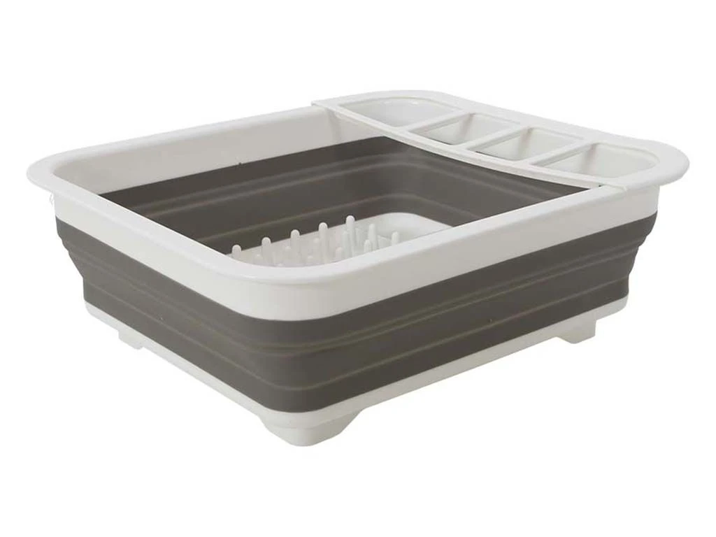 Een handig opvouwbaar afdruiprek van stevig kunststof. Zeer compact op te bergen en mee te nemen in bijvoorbeeld een camper of caravan. Het afdruiprek is op te vouwen tot een dikte van slechts 5 cm. Afmetingen: 37,5x29x12,5 cm.