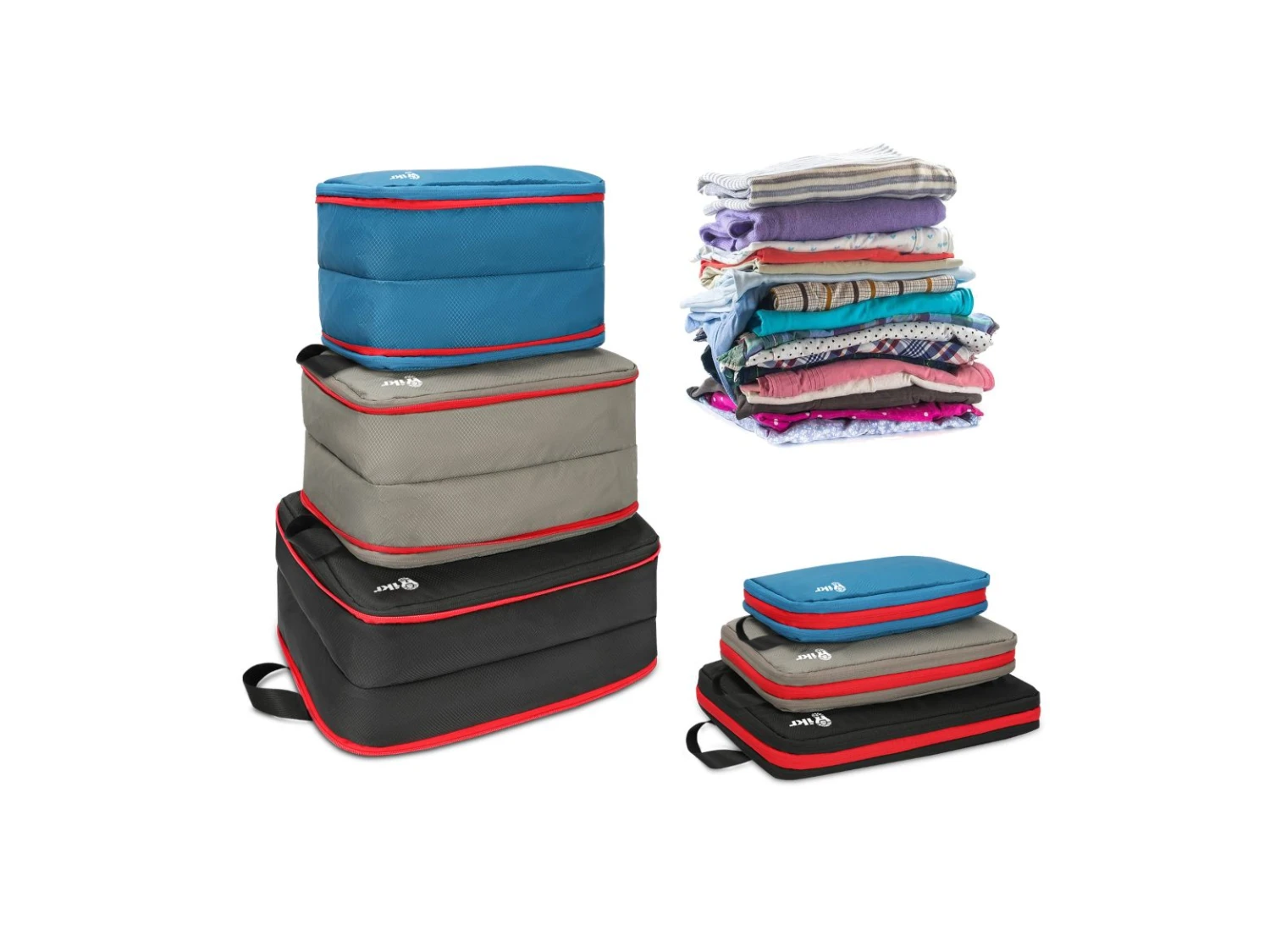 Deze waterdichte opbergtassen zijn vervaardigd van hoogwaardige 210D ripstop nylon. Daarmee zijn deze tassen uiterst robuust en kunnen ze tegen een stootje. De premium vuilafstotende packing cubes van Hikr beschermen je kleding dus optimaal en zorgen ervoor dat je kleding georganiseerd, schoon en kreukvrij blijft. Verder bestaat iedere opbergtas uit 2 verschillende compartimenten, waardoor je eenvoudig je vuile was kan scheiden van je schone kleding! Ook kan je middels effectieve compressie de opbergruimte van jouw bagage tot 60% verminderen! Zo maak je dus optimaal gebruik van de opbergruimte in jouw koffer of backpack. Verder houd je de verschillende opbergtassen van deze 3-delige set gemakkelijk uit elkaar, middels verschillende afmetingen en onderscheidende kleuren. Ook zijn deze packing cubes uitgerust met een handvat, wat ze zeer praktisch maakt in gebruik. Kortom, deze waterdichte opbergtassen van Hikr zijn een must voor iedere reiziger!