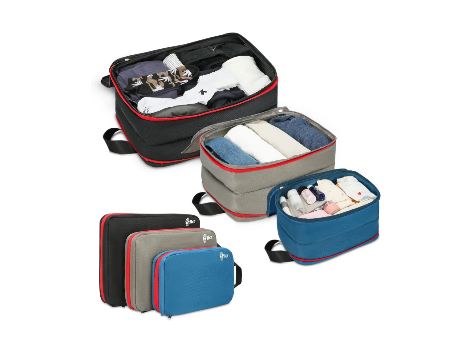 De Hikr packing cubes komen in 3 verschillende maten. Elke maat heeft een onderscheidende kleur, waardoor je gemakkelijk je bagage terug kan vinden in je backpack of reiskoffer.