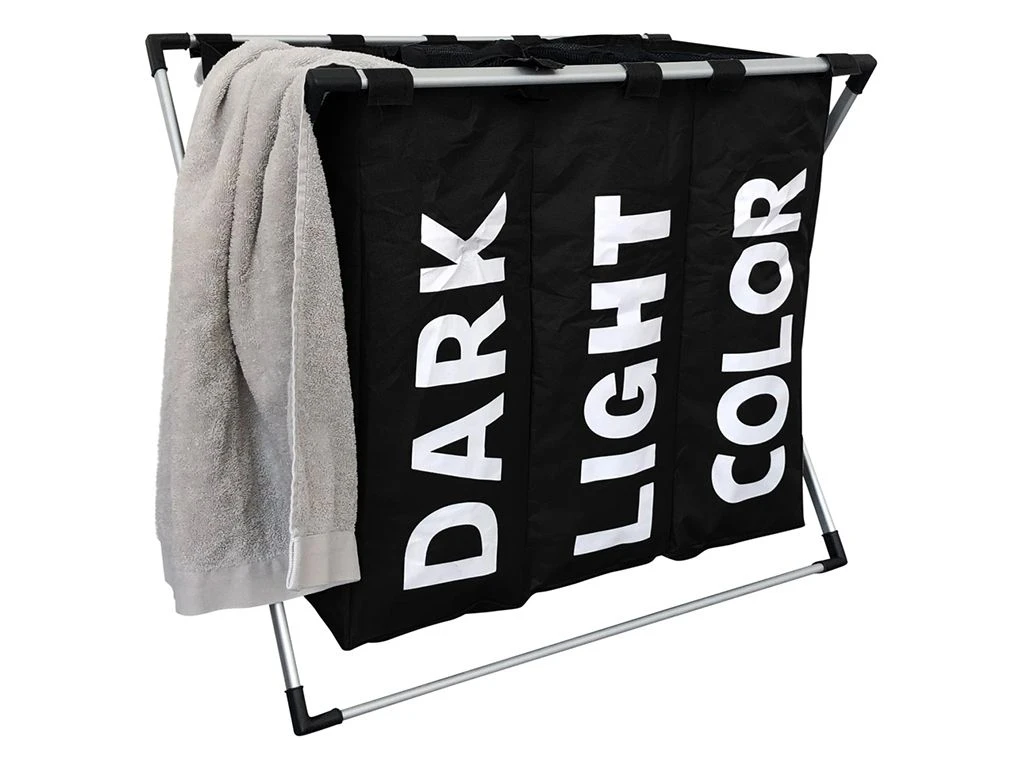De wasmand is ingedeeld in 3 delen, waarvan één voor donkere was, één voor witte was en één voor gekleurde/bonte was. Doordat de was al wordt gesorteerd als deze in de wasmand beland, hoef je dit niet meer te doen als je gaat wassen. Dat scheelt een hoop tijd en moeite. Daarnaast heb je zo meer inzicht in wanneer een bepaalde kleur gewassen moet worden en zet je geen halflege machine aan.