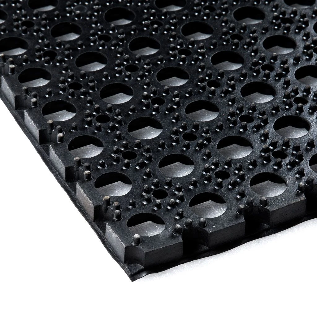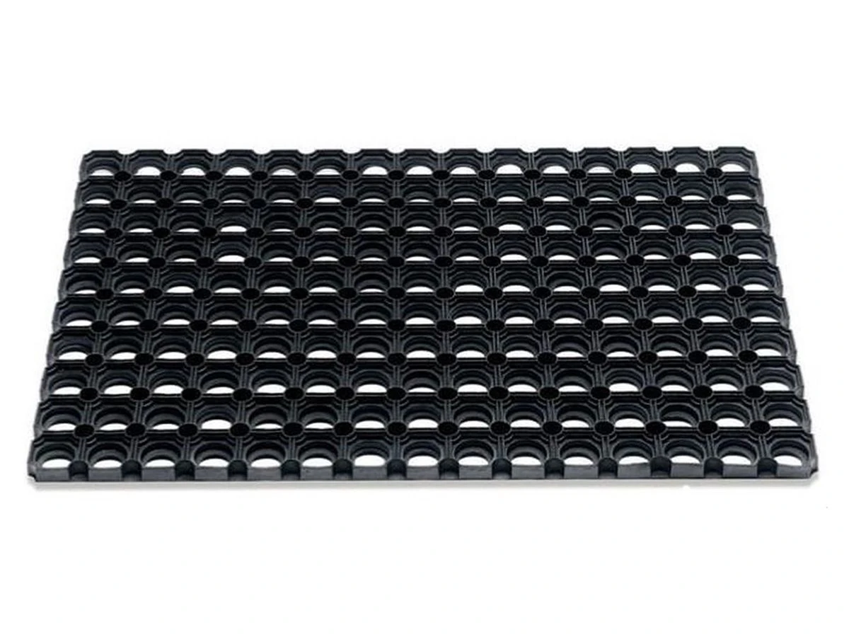 Een ringmat is zowel binnen als buiten te gebruiken. De open bodem zorgt voor een goede afvoer van vloeistoffen en vuil. Dat is niet alleen praktisch bij je entree, maar ook veilig op plaatsen waar de vloer vaak nat is. Doordat de mat van natuurlijk rubber is gemaakt, heeft deze een goede antislip werking, zelfs op koude en natte winterdagen. Tot slot heeft rubber een (geluid)dempende en isolerende werking. Schoonmaken van de ringmat kan heel gemakkelijk door deze uit te kloppen of af te spuiten met een tuinslang/hogedrukspuit.