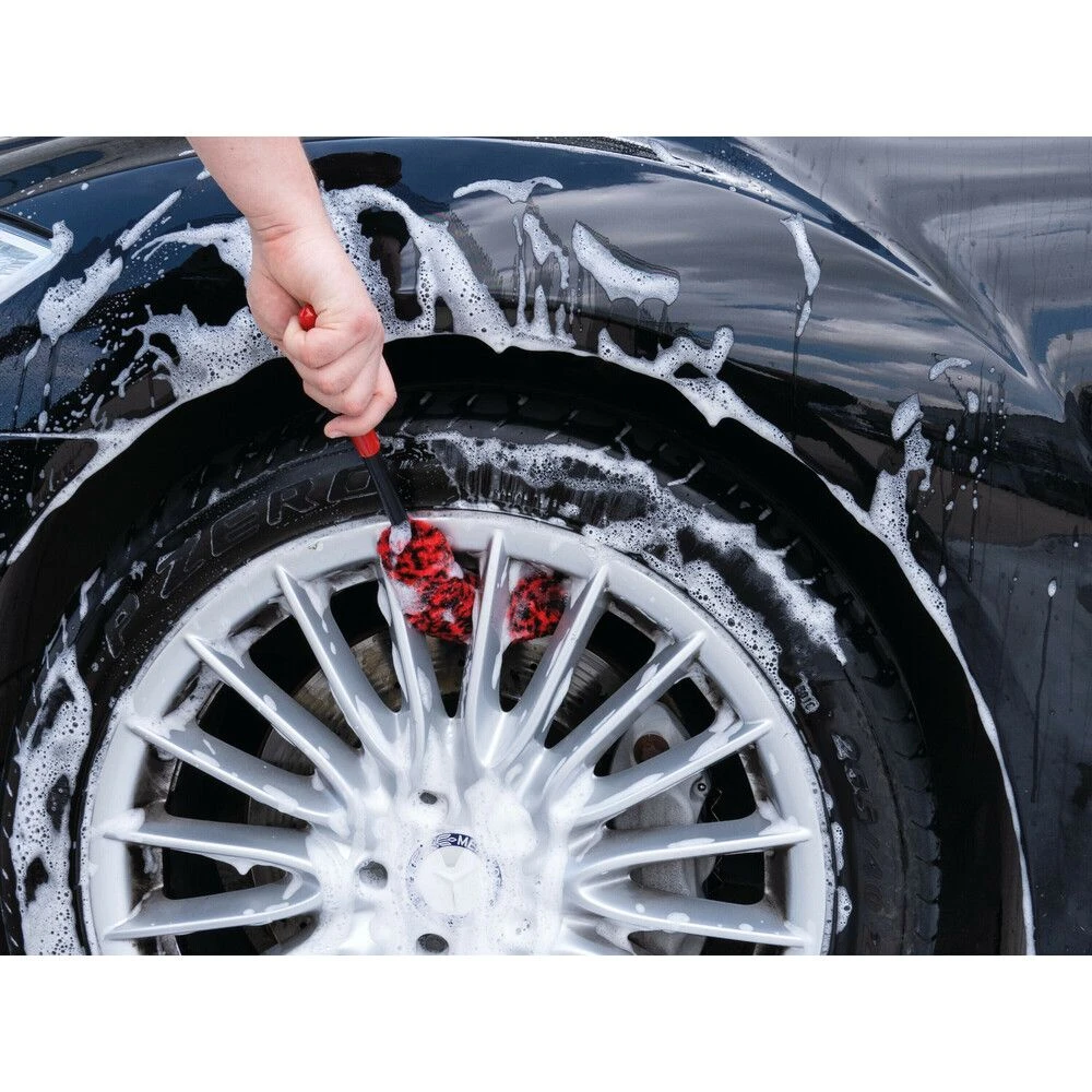 Borstel van robuuste maar zachte antikras microvezel, ontworpen voor het reinigen van lichtmetalen velgen en kunststof wieldoppen.