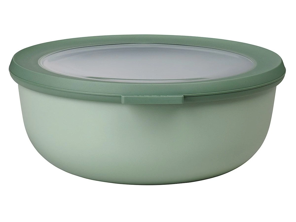 De Mepal multikom Cirqula 1,25 liter- Nordic Sage is perfect voor het bewaren of meenemen van etenswaren. De Cirqula serie van Mepal is speciaal ontwikkeld voor een complete ‘circle of use’. Bewaar eten in de schalen in de koelkast of de vriezer, warm het op in de magnetron (deksel moet worden verwijderd) en serveer je maaltijd in de schaal (direct) op tafel. De Mepal Cirqula multikom is gemaakt van onbreekbaar materiaal. Het transparante venster in de deksel zorgt ervoor dat de inhoud goed zichtbaar is. De innovatieve, soepele deksel is 100% luchtdicht en lekvrij. Hierdoor blijft voedsel langer vers en kan het perfect bewaard en meegenomen worden. De Mepal Cirqula multikommen zijn praktisch en gemakkelijk op te bergen omdat je ze op elkaar en in elkaar weg kunt zetten.