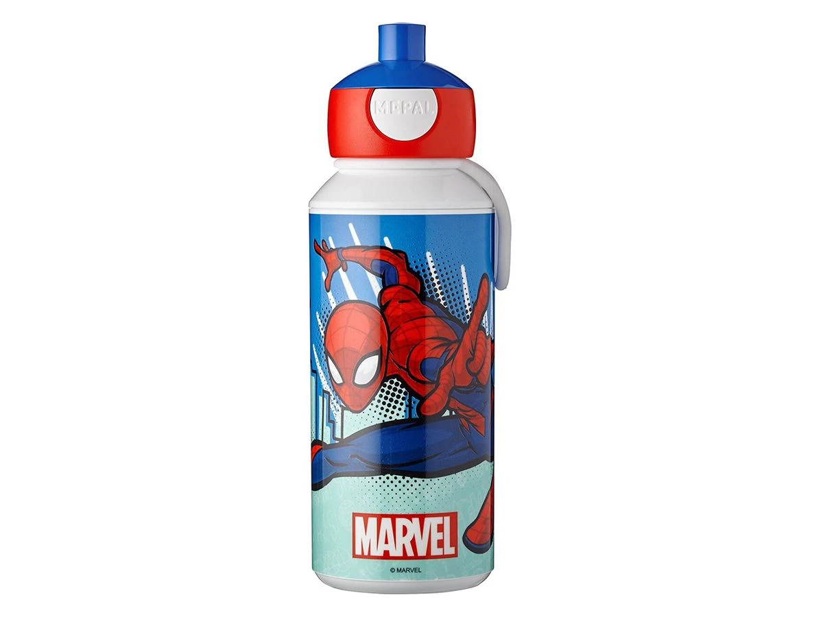 De pop-up drinkfles uit het assortiment van Mepal is echt ideaal. Druk en drink, dat is het principe. Druk op de drinktuit en de fles is open, druk nog een keer en hij is dicht. Reuze handig tijdens actieve momenten en voor een snelle slok tussendoor. Of om gewoon mee naar school te nemen natuurlijk! De Campus pop-up drinkfles in met stoere Spiderman print is gegarandeerd lekvrij en ook makkelijk door kleine kinderhandjes te gebruiken. De fles is voorzien van een handig lusje, waarmee je hem zonder moeite meeneemt. Fijn voor papa en mama: de fles mag in zijn geheel in de vaatwasser en de dop is eenvoudig uit elkaar te halen.