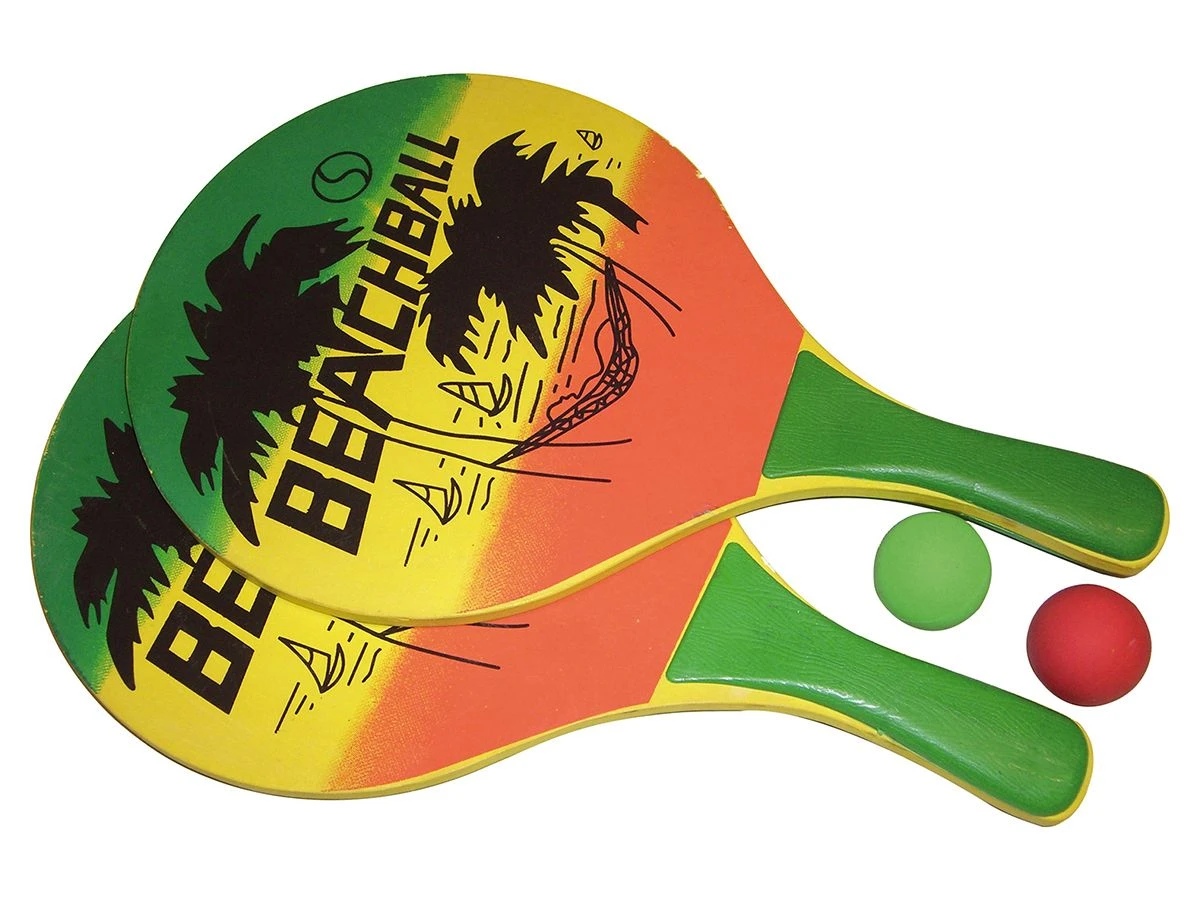Deze vrolijk gekleurde beachball set zorgt gegarandeerd voor vele uurtjes speelplezier op het strand, in het park of gewoon thuis in de tuin. De set bestaat uit 2 houten bats van 40 x 24 cm en 2, gekleurde balletjes in een praktische draagtas.