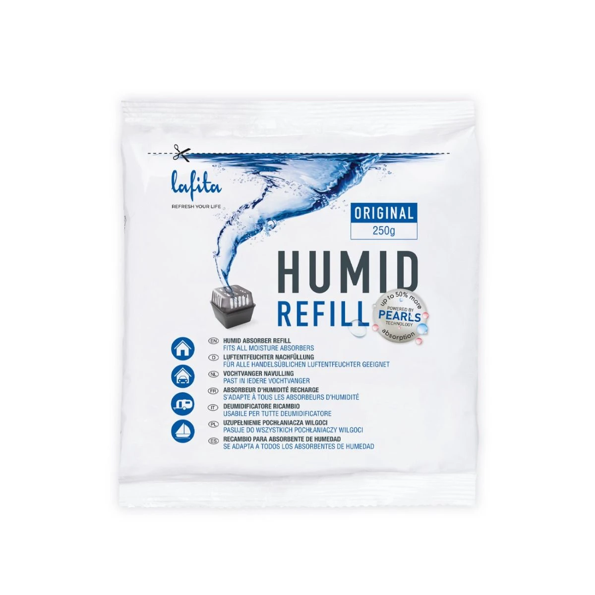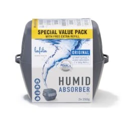 Lafita vochtvangers absorberen overtollig vocht in de ruimte met de extra krachtige vochtopnemende parels. De speciale Pearls nemen 50% meer vocht op dan de normale vochtvangers. De stevige en compacte opvangbak heeft een simpel en strak design. Deze voordeelverpakking bevat een opvangbak en twee navullingen.