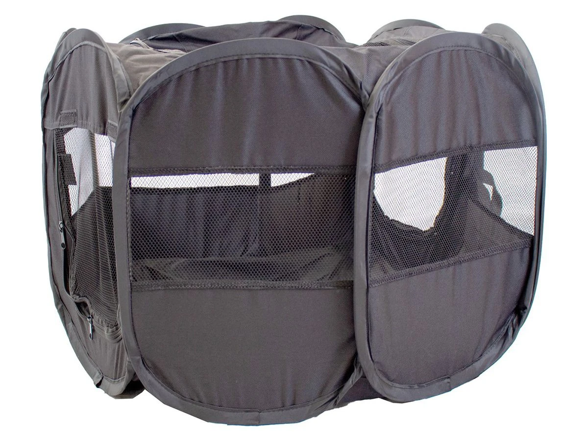 Een zeer stevige, maar volledige opvouwbare pop-up hondenren geleverd in een handige draagtas. De volledig mobiele puppy ren is geschik voor binnenshuis of in de tuin, maar neemt u ook gemakkelijk overal mee naar toe.