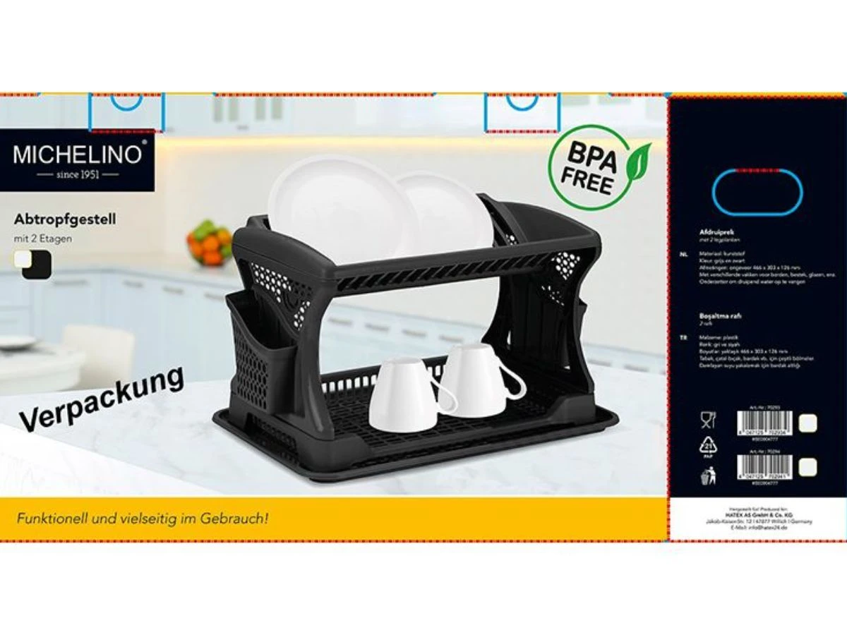 Voeg dit praktische en stijlvolle afdruiprek toe aan je keuken en geniet van de efficiëntie en organisatie die het biedt. Bestel vandaag nog en ervaar zelf het gemak van het Michelino Afdruiprek met twee lagen.