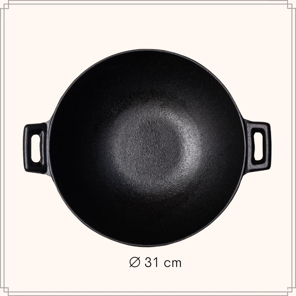 Maak je favoriete wokgerechten snel klaar in deze gietijzeren wokpan van OTIX. Door het bakken van vlees en andere vette voedingsmiddelen vormt er zicht een natuurlijke antiaanbaklaag in de pan. Doordat de pan volledig is gemaakt van ijzer, heeft deze een gelijkmatige warmteverdeling wat zeer geschikt is voor het wokken van gerechten. Gietijzeren kookgerei is gemaakt om vele jaren mee te gaan. Droog de pan goed af om roest te voorkomen. De koekenpan is geschikt voor alle warmtebronnen. LET OP: Gebruik altijd een inductie beschermer.