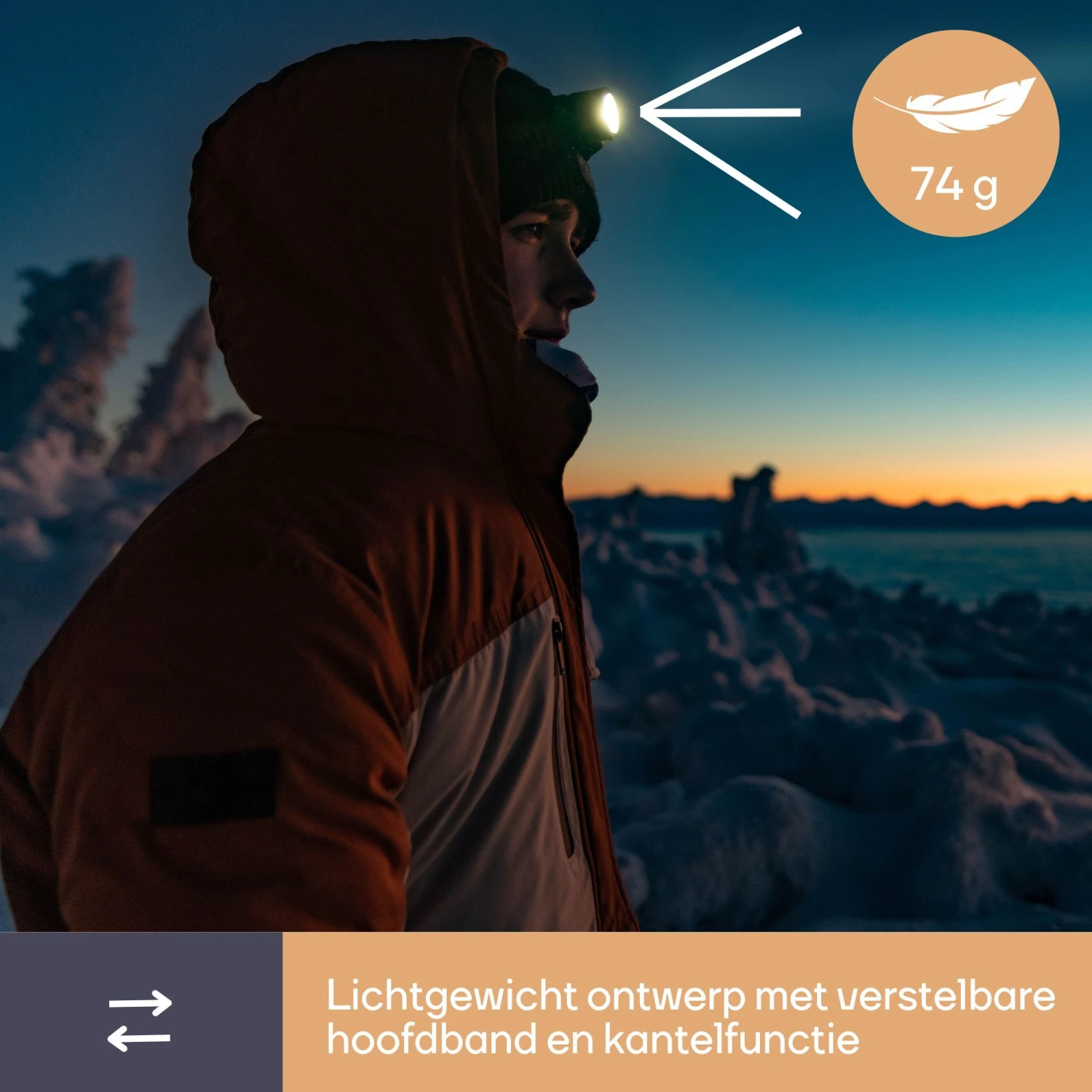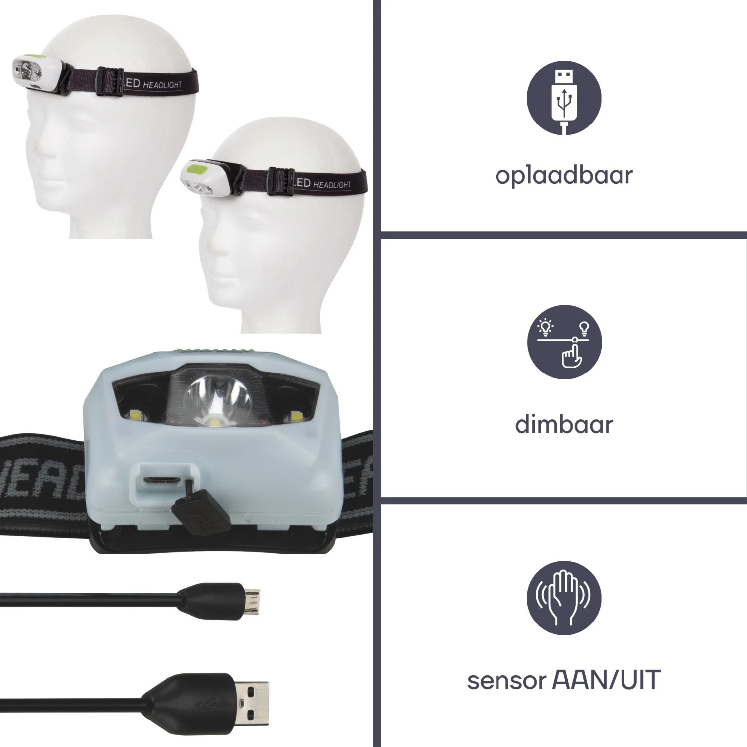Maak kennis met onze led-hoofdlamp, het perfecte verlichtingsinstrument voor elke situatie. Uitgerust met een krachtige Cree XPG led, biedt deze hoofdlamp tot 160 lm lichtstroom, met verschillende lichtmodi, inclusief SOS. Bovendien is opladen een fluitje van een cent dankzij de meegeleverde micro USB-kabel. De aan/uit-sensor zorgt voor handsfree gebruik en de verstelbare neiging en hoofdband verzekeren dat het licht altijd daar is waar je het nodig hebt. Bovendien, met een indrukwekkende werktijd van 55 uur, is opladen een fluitje van een cent dankzij de meegeleverde micro USB-kabel. De verstelbare neiging en hoofdband verzekeren een handsfree gebruik en dat het licht altijd daar is waar je het nodig hebt.