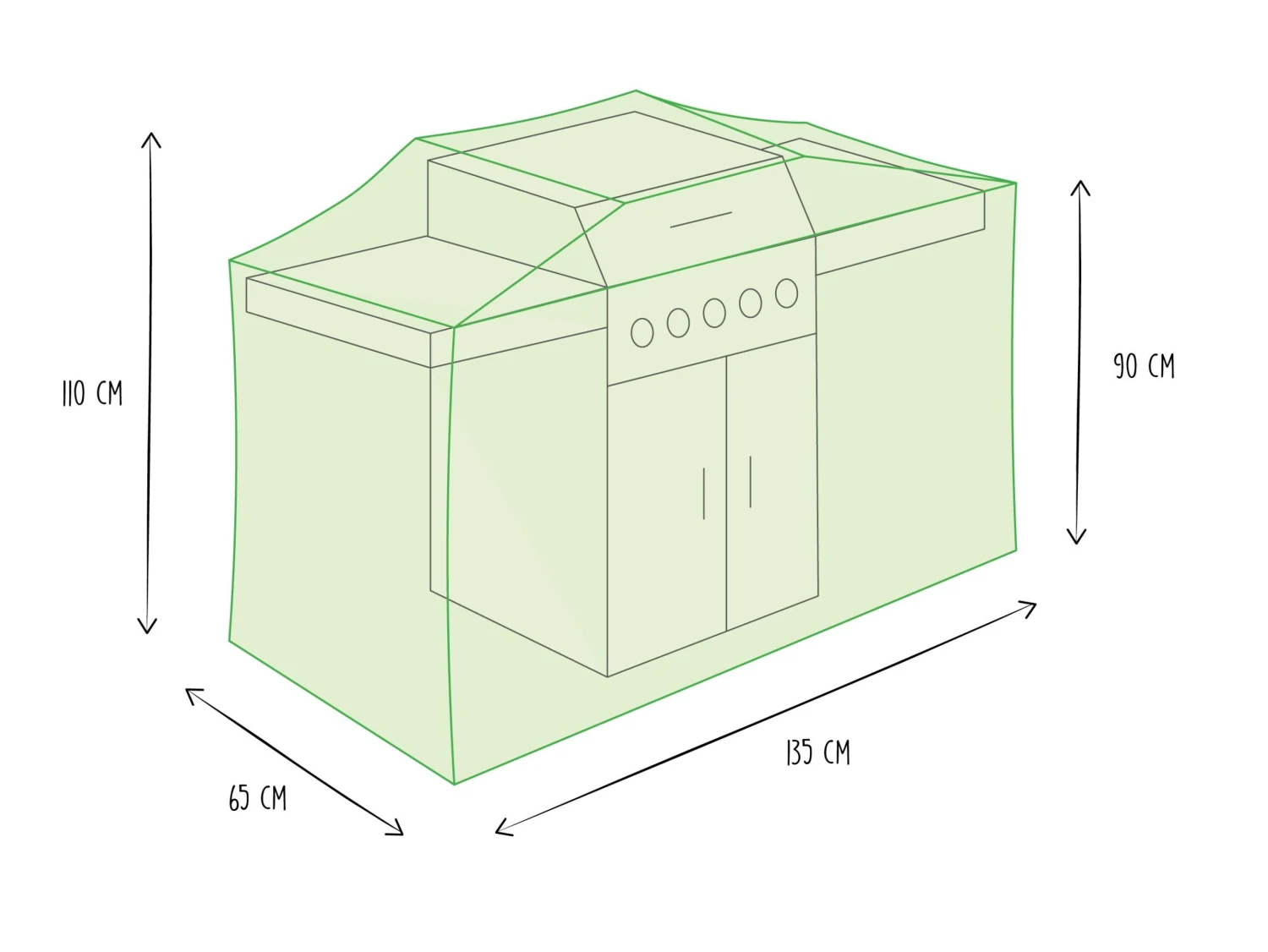 Met deze hoes blijft je barbecue beschermd tegen regen of zonneschijn, perfect voor afmetingen van 110 cm hoog, 135 cm breed en 65 cm diep. Deze beschermhoes houdt je grill veilig en netjes, ongeacht het weer.