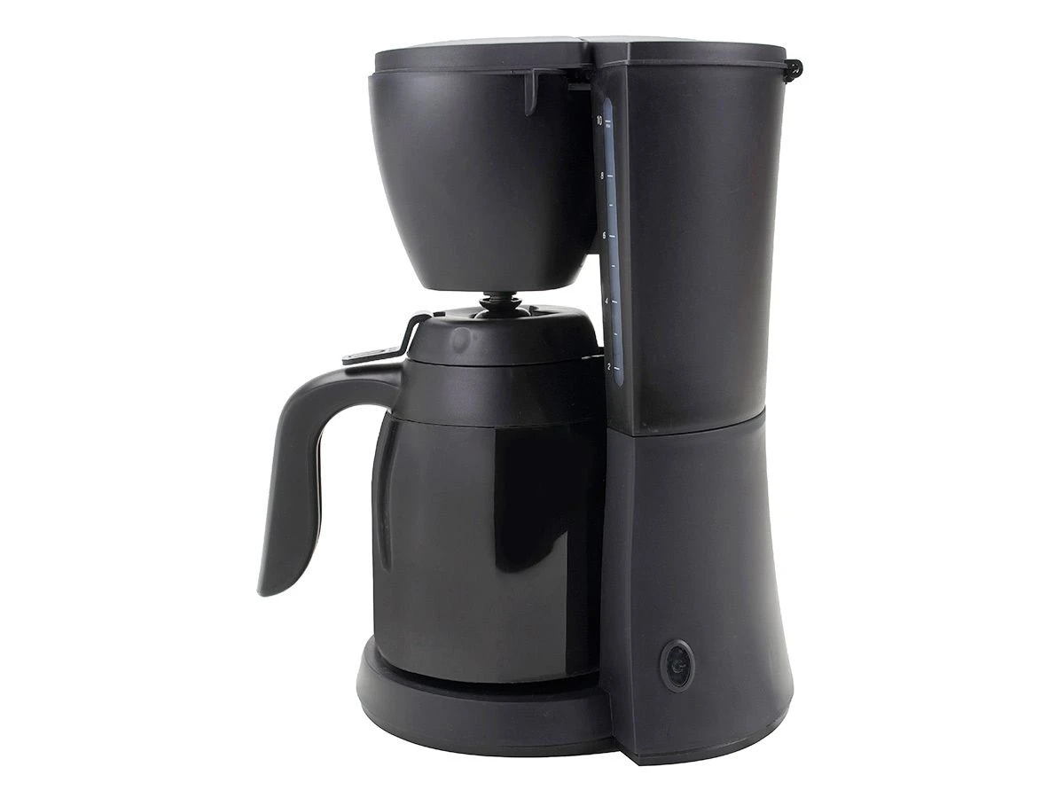 Het koffiezetapparaat heeft een modern uiterlijk van een zwarte behuizing. De thermoskan is uitgerust met een ergonomische handgreep en heeft een inhoud voor 10 koppen koffie.