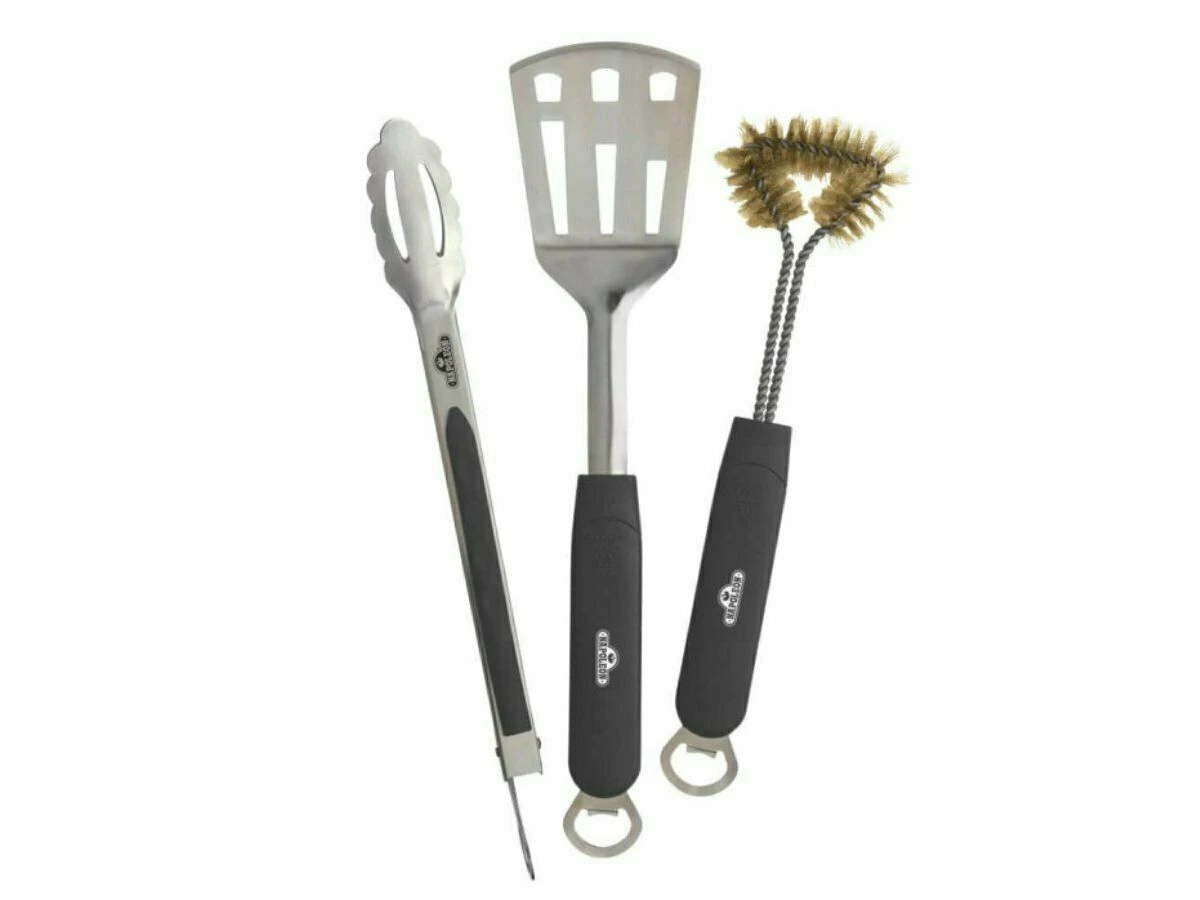 Deze set bevat een tang, spatel en grillborstel, perfect voor het bereiden van je favoriete gerechten op de barbecue. Het grillbestek is gemaakt van duurzaam RVS en de grillborstel messing borstelharen heeft voor een grondige reiniging van je grill. De handgrepen zijn hittebestendig en hebben een geïntegreerde flesopener, die ook als ophangoog dient. Dit maakt het niet alleen praktisch, maar ook handig om je gereedschap altijd binnen handbereik te hebben. Bovendien is de set vaatwasserbestendig, wat het onderhoud een stuk eenvoudiger maakt. Kortom, met de Napoleon 3-delige gereedschapsset haal je een kwalitatief hoogstaand en veelzijdig product in huis dat je barbecue-ervaring naar een hoger niveau tilt.