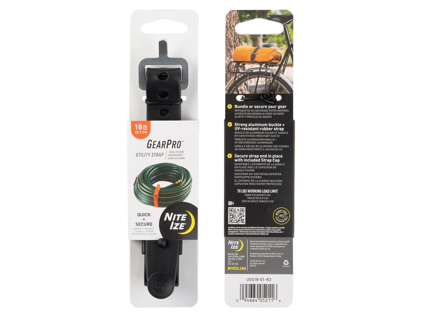 De Nite Ize GearPro Utility Strap maakt het vastzetten van ladingen en het bundelen van spullen een fluitje van een cent. Of het nu gaat om het inladen van spullen voor de rit naar huis, het ordenen van snoeren en kabels in de garage, het bundelen van ski’s op de hellingen of het vervoeren van items op uw fiets. De GearPro heeft een sterke aluminium gesp en een rekbare, UV-bestendige rubberen band. De gearpro heeft een maximale belasting van 31 of 36 kg afhankelijk van de maat. Voor extra gebruiksgemak heeft de strap een schuiflus met een drukknoop. Hiermee houd je het uiteinde van de riem op zijn plaats en voorkom je dat de overtollige riem klappert of ergens in verstrikt raakt.