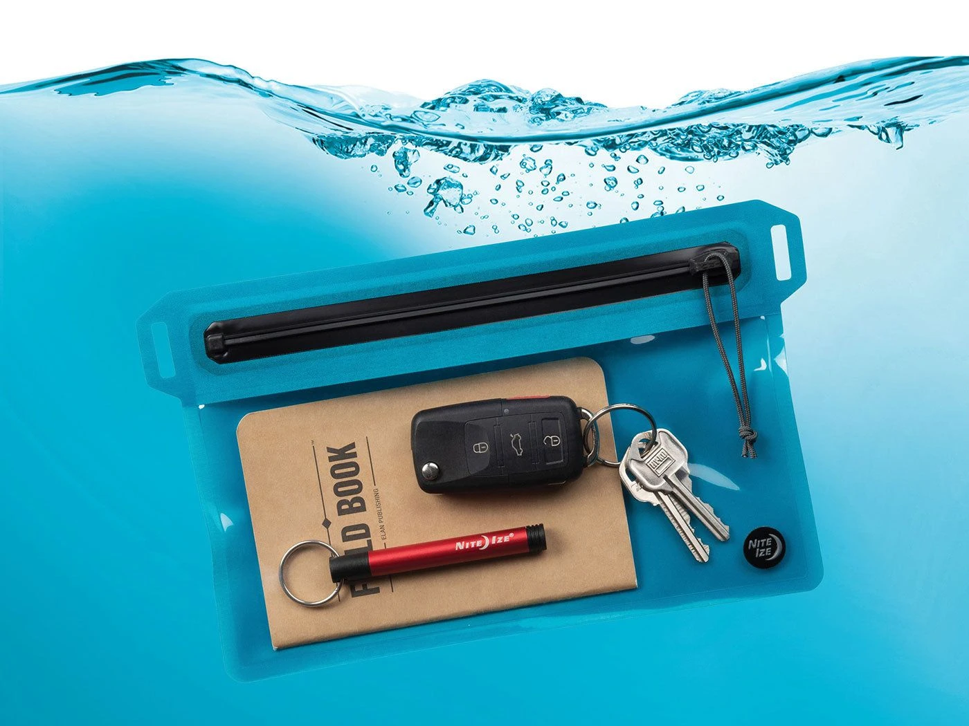 De RunOff Waterproof Travel Pouch is zoals de naam al aangeeft een waterdicht opberg etui, geschikt voor bijvoorbeeld autosleutels, mobiele telefoon, portemonnee en ga zo maar door. De touchscreen van je telefoon werkt zelfs door de transparante voorkant. De RunOff is voorzien van de zogenaamde TRU-zip, dit is ’s werelds eerste water- en stofdichte rits. Het compartiment waarin je spullen kunt stoppen is 12cm hoog 22.50cm in lengte. De RunOff is gemaakt van TPU, een flexibel en ultra duurzaam synthetisch rubber. Het breekt niet en trekt geen stof aan en krast nauwelijks.