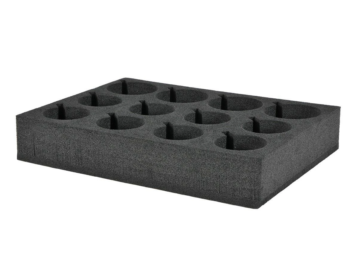 Diameter uitsparingen: 4x Ø 7,5 cm en 8x Ø 6 cm.