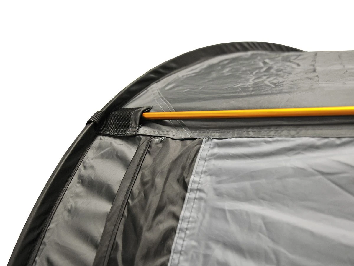 Ben je aan het rondtrekken met de auto of minicamper en heb je behoefte aan extra ruimte en privacy? Dan is de Obelink Ontario de oplossing. Deze vrijstaande kleptent is dankzij het pop-upsysteem razendsnel op te zetten. Haal de tent uit de tas, gooi hem uit en de tent ontvouwt zichzelf. Plaatst vervolgens de aluminium dwarsstokken in het dak en je kunt de tent vastzetten met haringen en scheerlijnen.