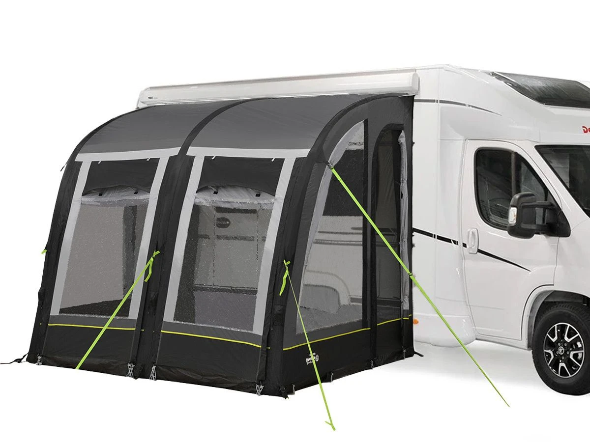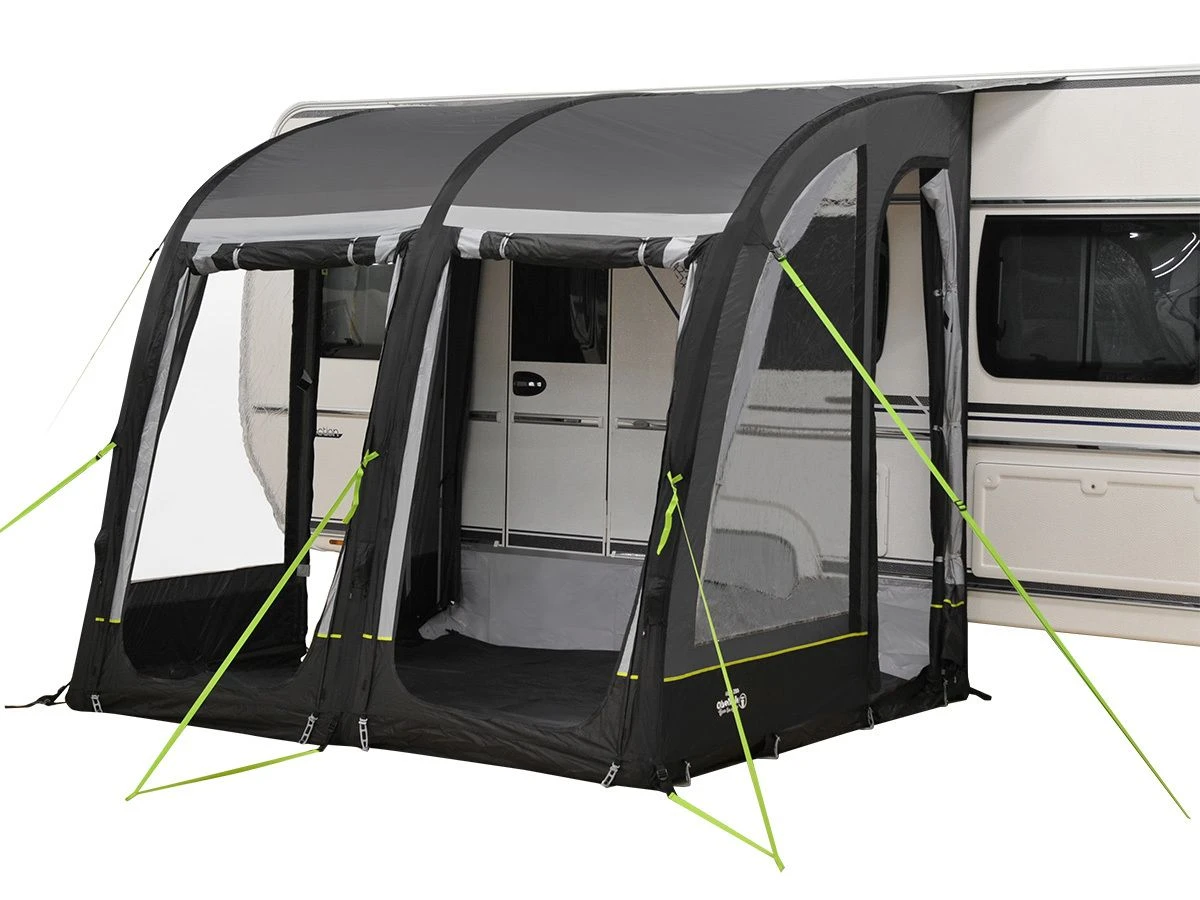 De Palma 280 Easy Air is voorzien van een 5 mm en een 7 mm pees zodat deze zowel in de caravanrail als in een cassetteluifel geschoven kan worden. Dankzij de verstelbare hoogte is deze voortent geschikt voor voertuigen met een aanbouwhoogte vanaf 240 cm tot en met 280 cm. De achterzijde van de zijwand is verstelbaar en dankzij de meegeleverde aandrukstangen sluit de Palma 280 Easy Air altijd mooi tegen de wand aan.