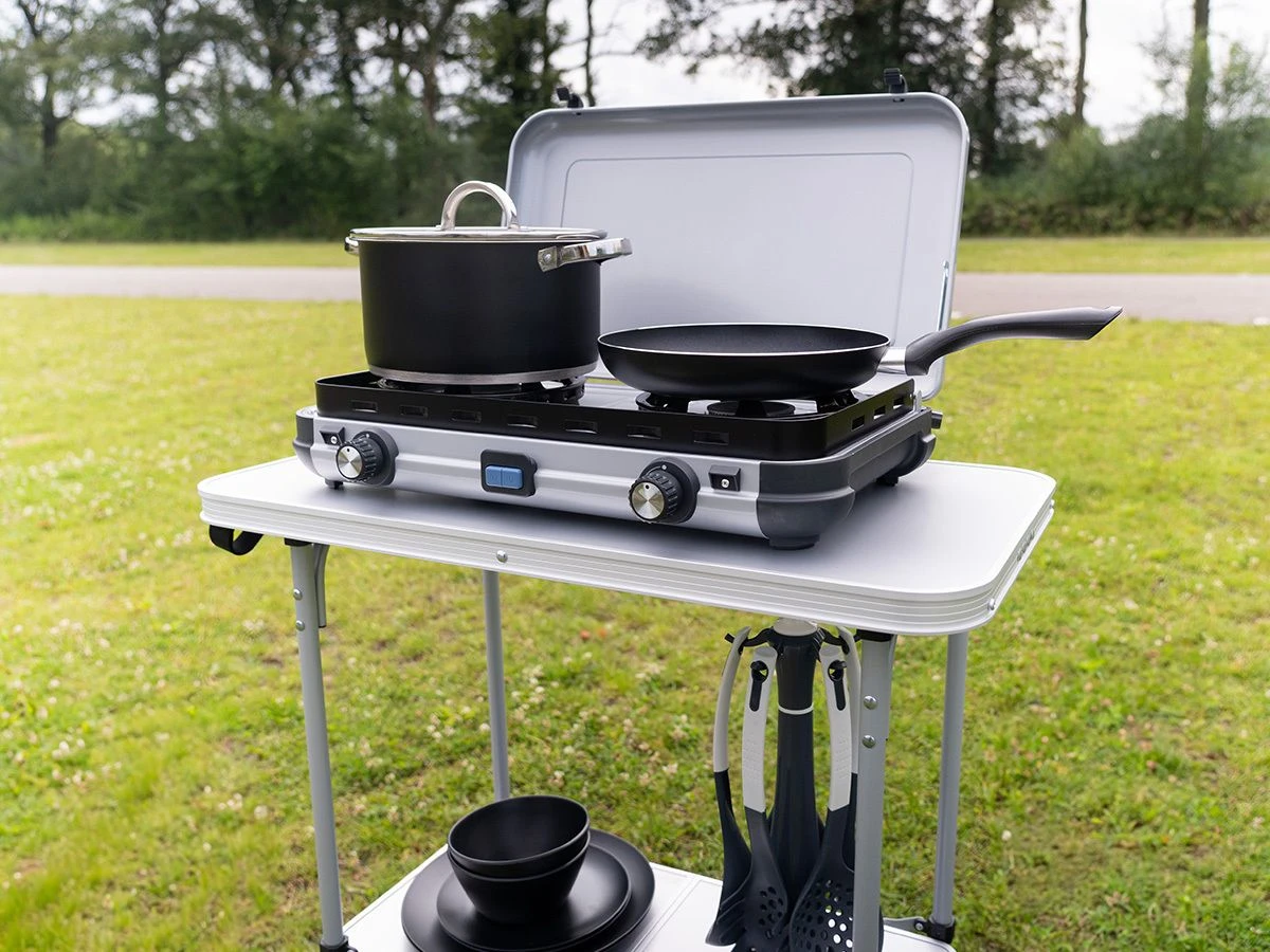 Na gebruik is deze kooktafel eenvoudig in te klappen tot een klein pakket waardoor je hem makkelijk kunt vervoeren.