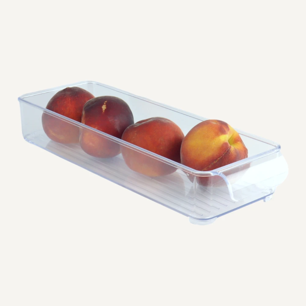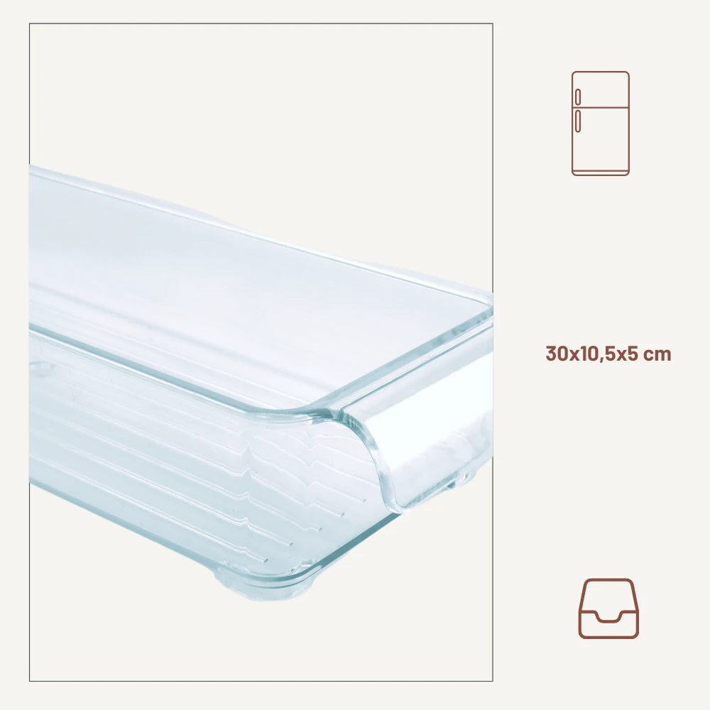 Deze Orange85 koelkast organizer is handig voor het opbergen van vleeswaren in de koelkast. Deze rechthoekige doos is eenvoudig op te stapelen voor meerdere lagen vleeswaren. De doos is 30 bij 10.5 cm en heeft een hoogte van 5 cm. Aan de voorkant van de doos zit een handgreep waarmee hij eenvoudig naar je toe te trekken is. Het advies is om deze doos met de hand af te wassen.