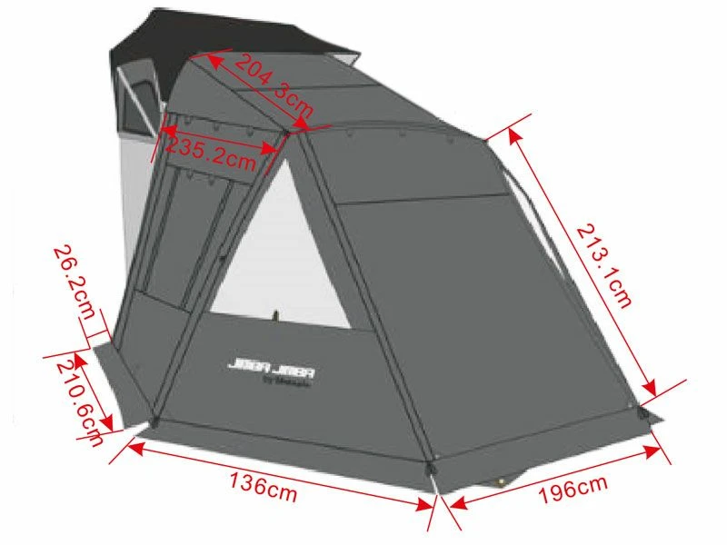 De Jimba Jimba voortent is geschikt voor alle voertuigen met een hoogte tussen de 170 en 220 cm.