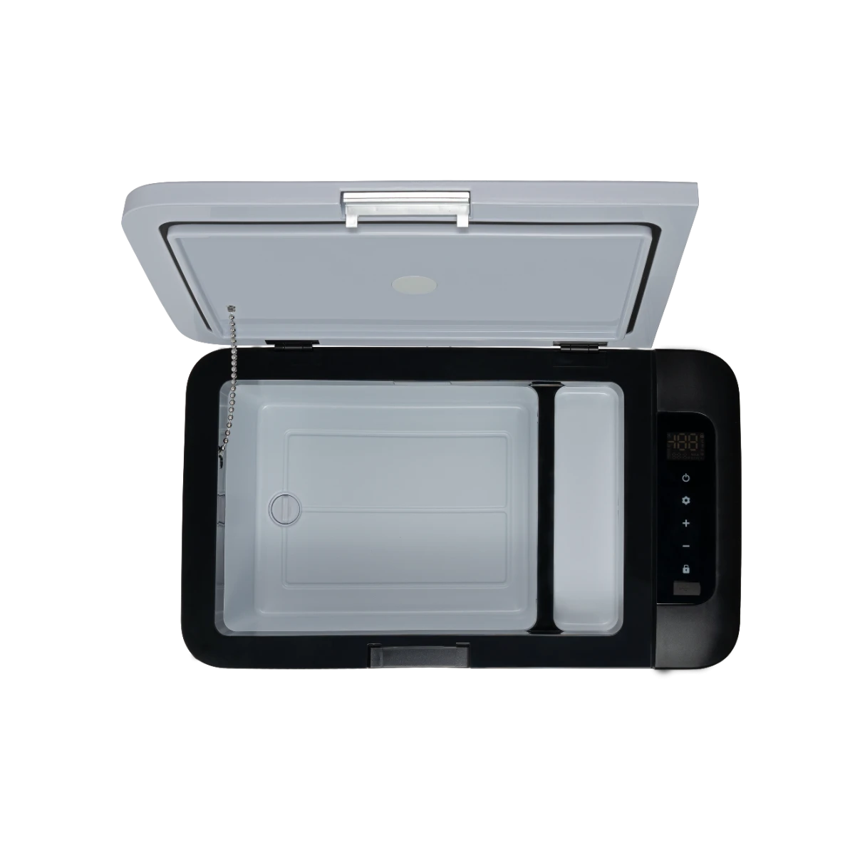 Deze hoogwaardige koelbox heeft twee compartimenten en is aan te sturen door middel van de Bluetooth app of het LCD display aan de zijkant. Rondom is de constructie voorzien van dik isolatieschuim, wat niet alleen maakt dat de koelbox lang op temperatuur blijft maar ook maakt dat de koelbox zeer robuust is. Het koelsysteem wordt uitgeschakeld zodra de ingestelde temperatuur in de koelbox is bereikt en zal automatisch weer worden geactiveerd zodra de temperatuur in de koelbox enkele graden Celsius is gestegen.