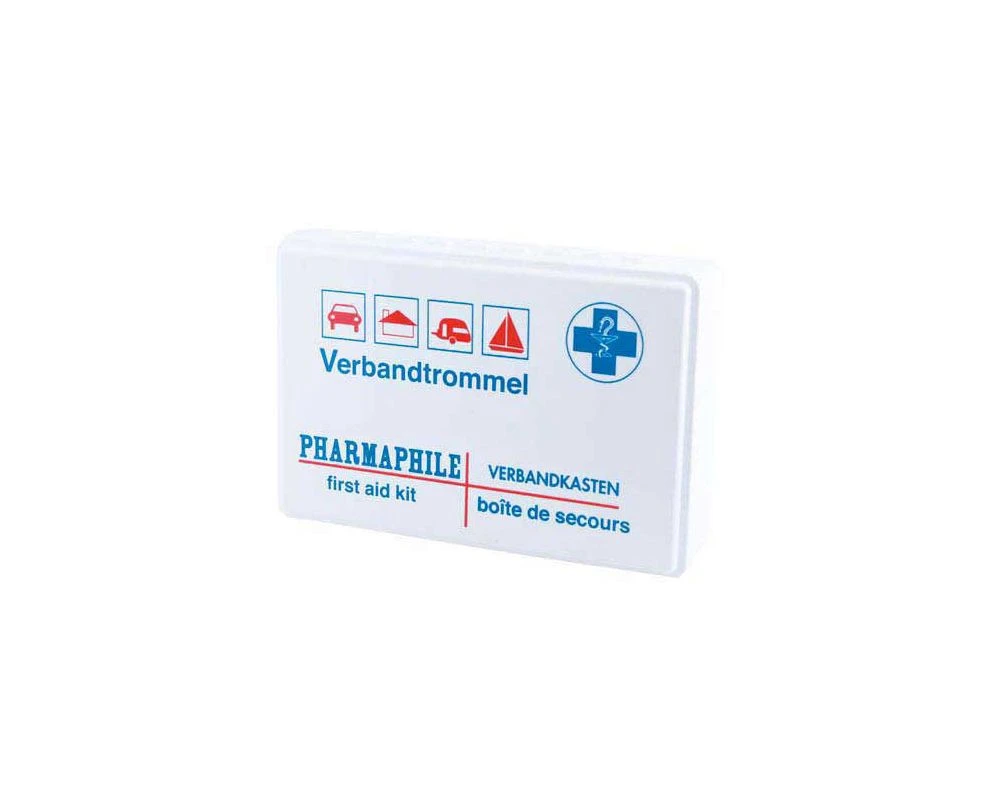 Verbandtrommel “Euro” – 1* Snelverband no1 steriel – 3* Steriele gaaskompressen 1 -16 – 1 Pakje watten a 10g – 1* Elastisch windsel 4 m x 4 cm – 1* Elastisch windsel 4 m x 6 cm – 1* Driekante doek – 2* Spelden – 2* Disposable latexhandschoenen CE – 3* Deppers – 1*Schaar – 1* Rol hechtpleister 1 m x 1,25 cm – 5* Pleister strips 1,9 cm x 7,2 cm