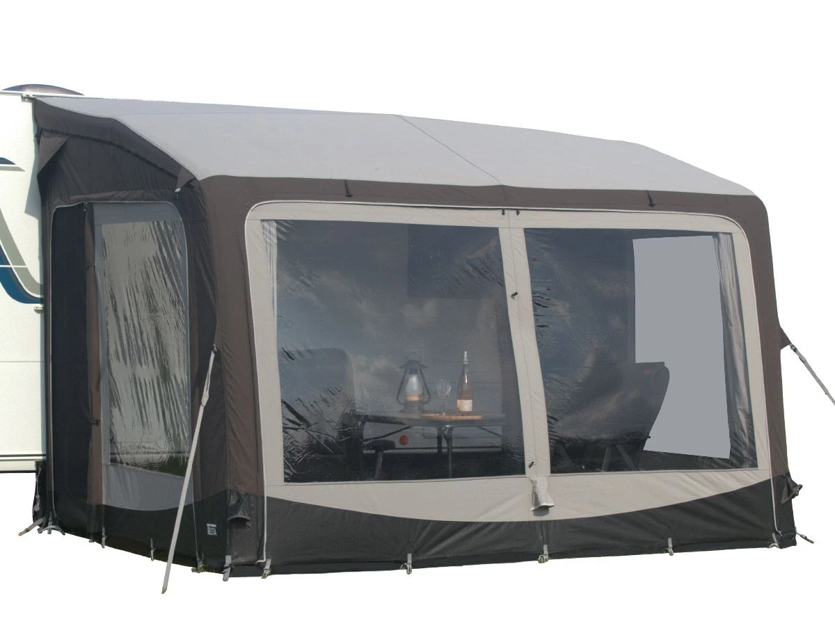 De Pure serie van Telta bestaat uit eenvoudige, toegankelijke en gebruiksvriendelijke voortenten. Ondanks het strakke en ogenschijnlijke simpele ontwerp is over alles nagedacht. Zo zijn alle panelen volledig uitritsbaar zodat de voortent in een handomdraai om te toveren is tot een zonneluifel voor mooie zomerdagen. Dankzij de extra hoge voorkant is er overal voldoende stahoogte. Hierdoor hebben de panelen een hoogte van ± 187 cm zodat je de voortent zonder te bukken kunt betreden. De grote getinte ramen zorgen voor veel lichtinval én privacy. Voor volledige privacy kunnen alle ramen van binnenuit afgedekt worden met de meegeleverde gordijnen.