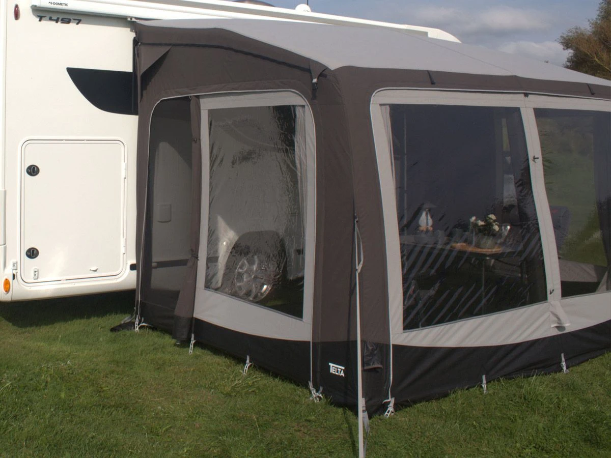 De Telta voortenten zijn gemaakt van een stevig polykatoen materiaal dat een prettig klimaat in de voortent biedt.
