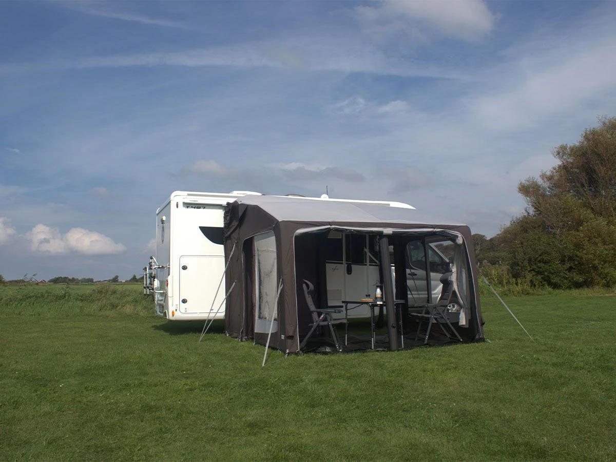 Doordat het achterste stuk van de voortent geen luchtslangen bevat, kan je de campertent ook goed gebruiken wanneer je een buscamper met schuifdeur hebt.