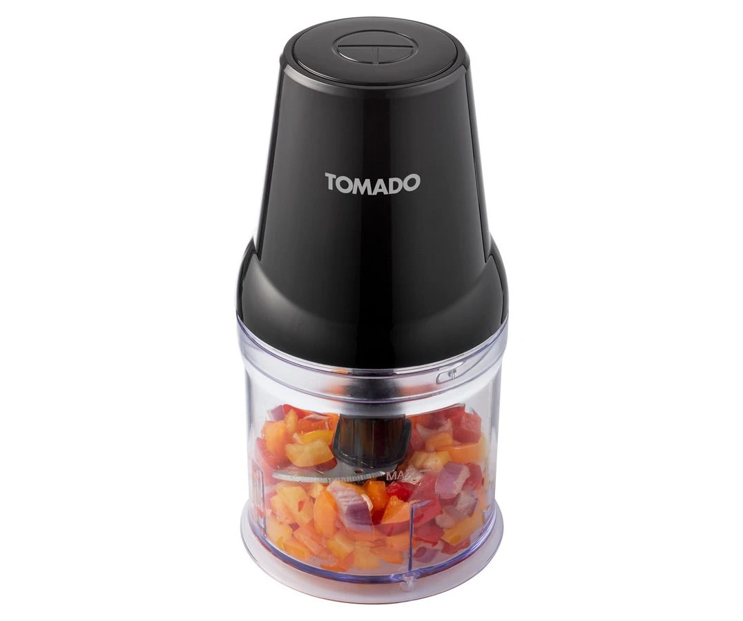 Waarom zou je nog zelf gaan snijden als de ingrediënten binnen enkele seconden voor je gehakt kunnen worden? Met de Tomado TCH2001B hakmolen hak je zowel hard als zacht voedsel binnen no-time fijn. Deze ideale keukenhulp heeft een startknop aan de bovenkant waarmee hij heel makkelijk te bedienen is. Houdt de knop ingedrukt om de messen te laten werken om de ingrediënten te malen. De losse onderdelen zijn gemakkelijk los te maken van elkaar om ze te reinigen in bijvoorbeeld de vaatwasser.